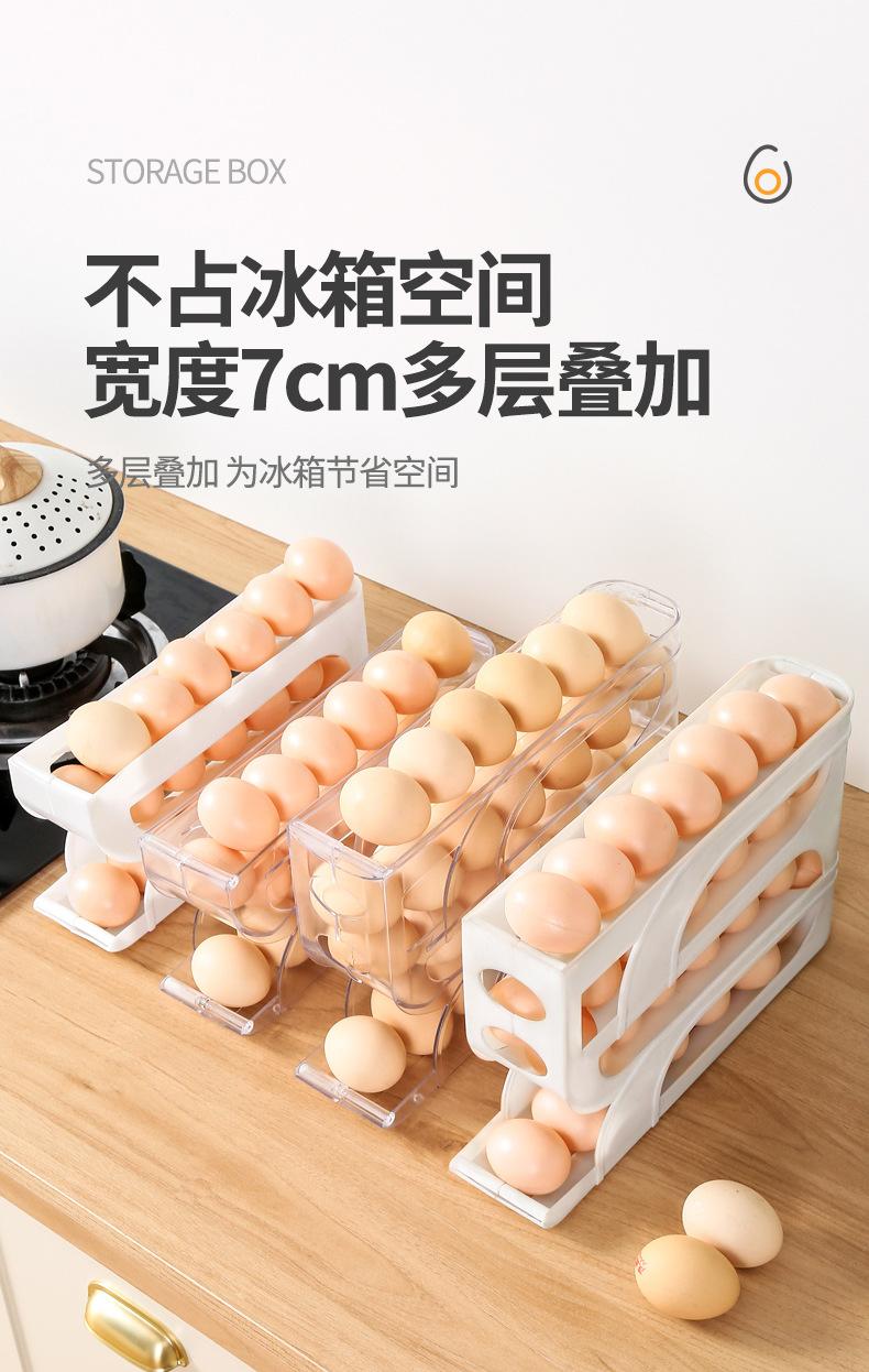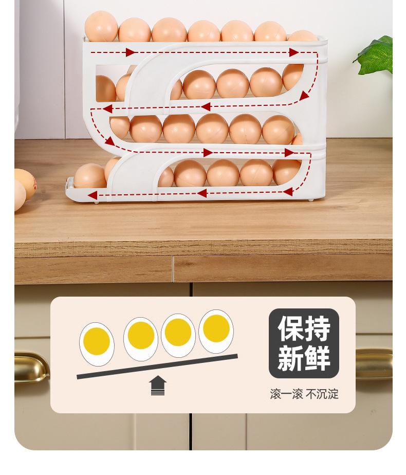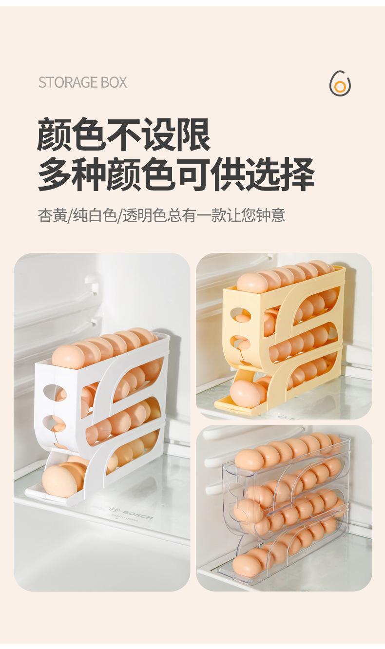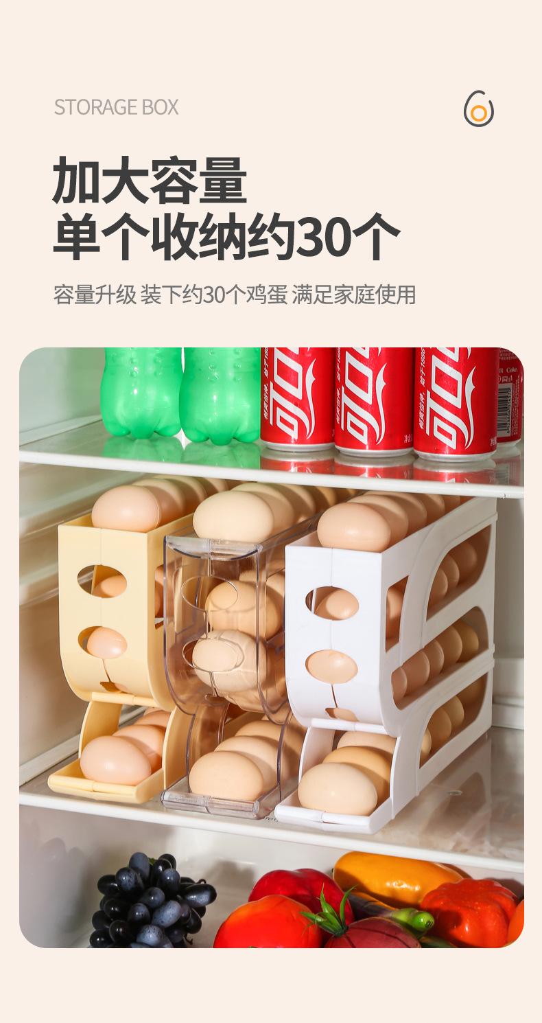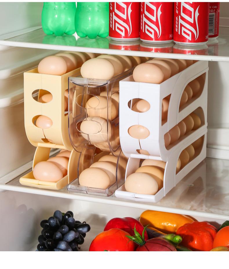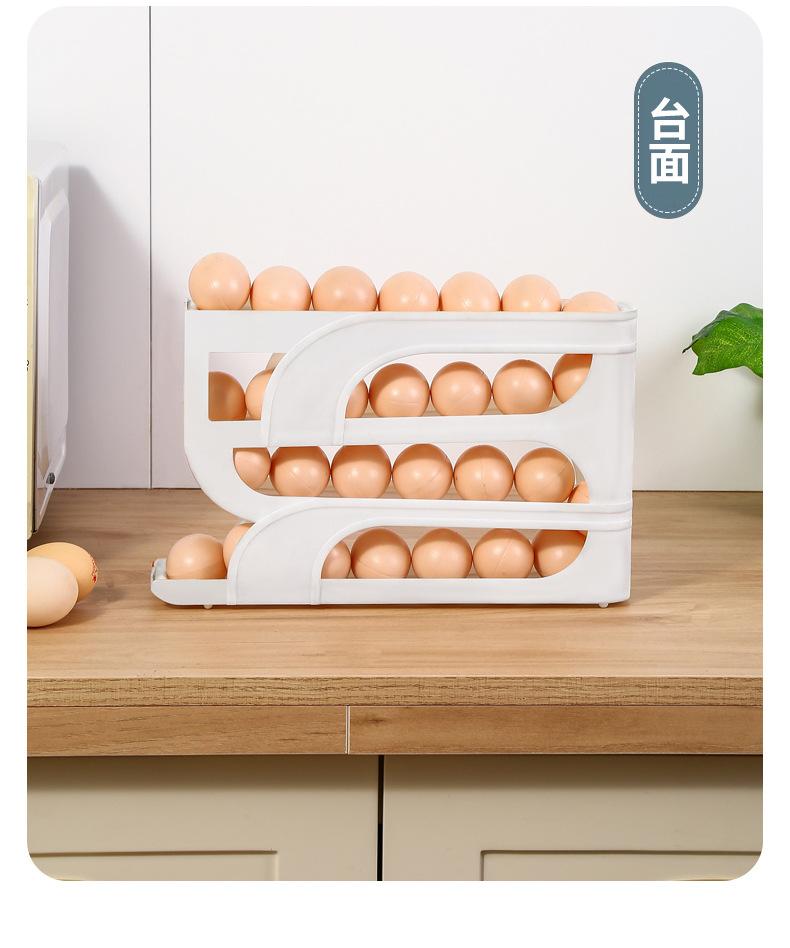 Caja para guardar huevos de cocina, anticaída, de cuatro capas, con soporte deslizante automático para el refrigerador