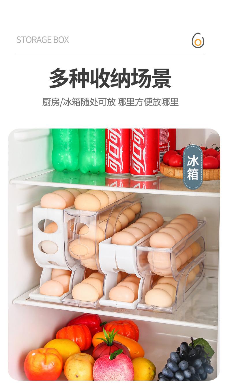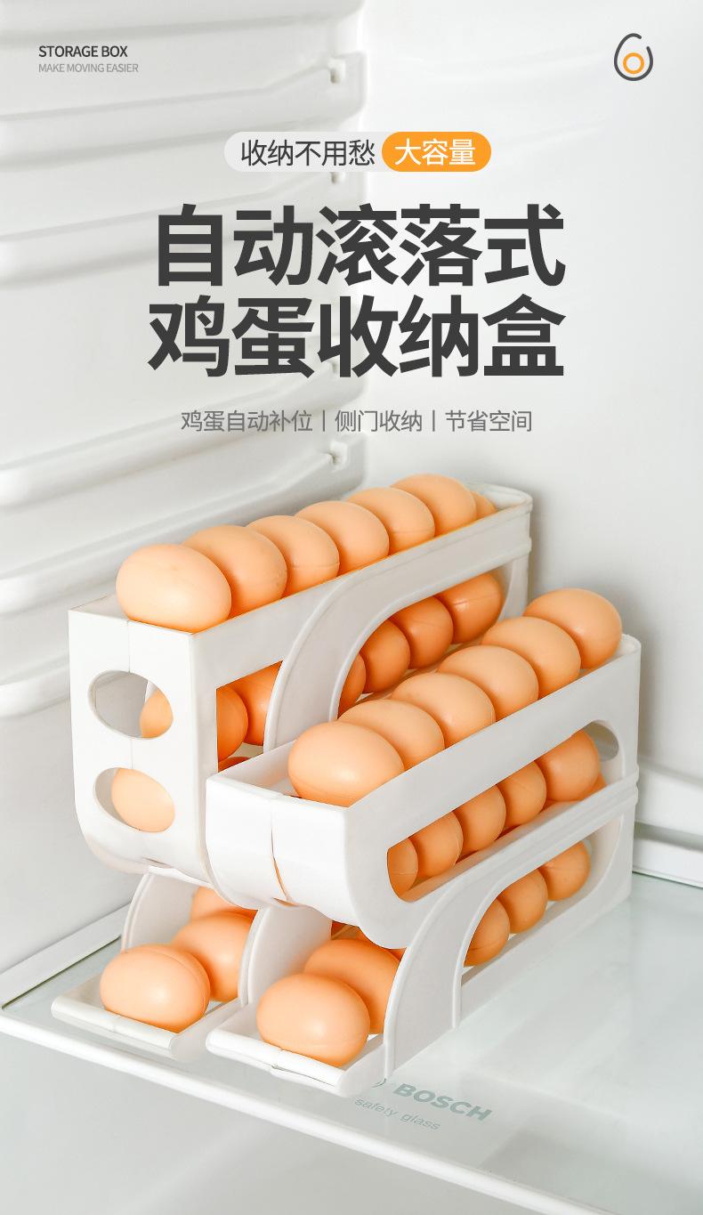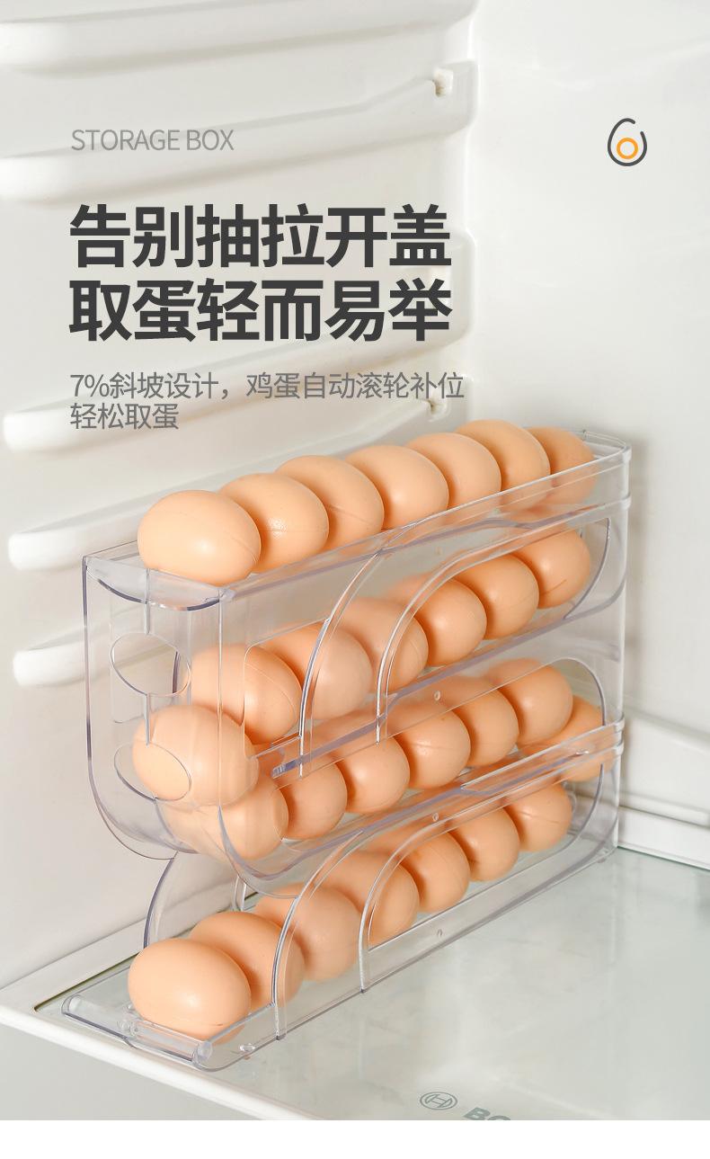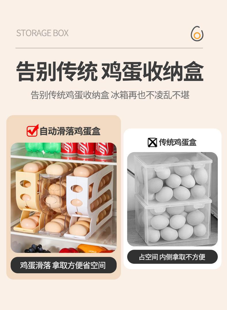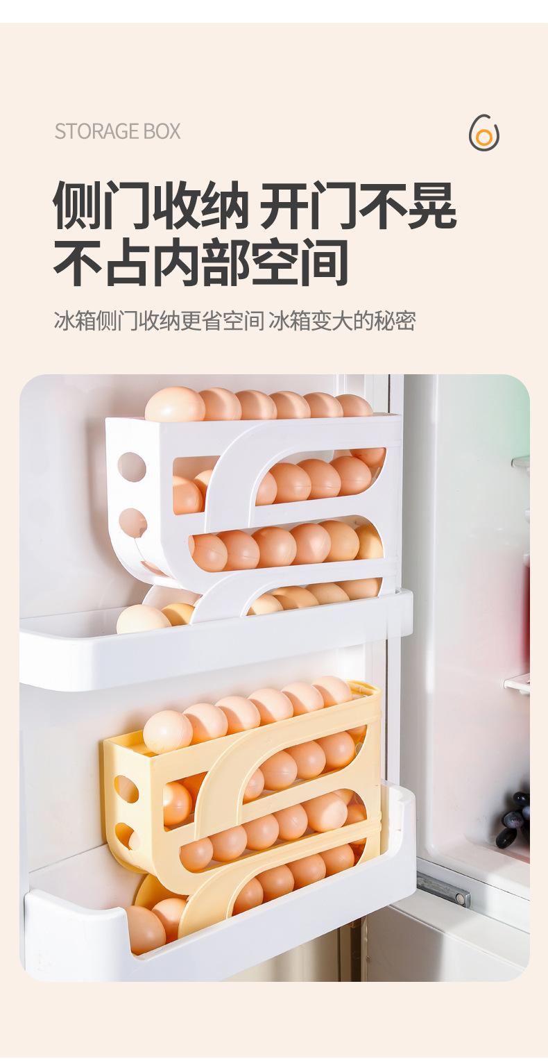 Caja para guardar huevos de cocina, anticaída, de cuatro capas, con soporte deslizante automático para el refrigerador