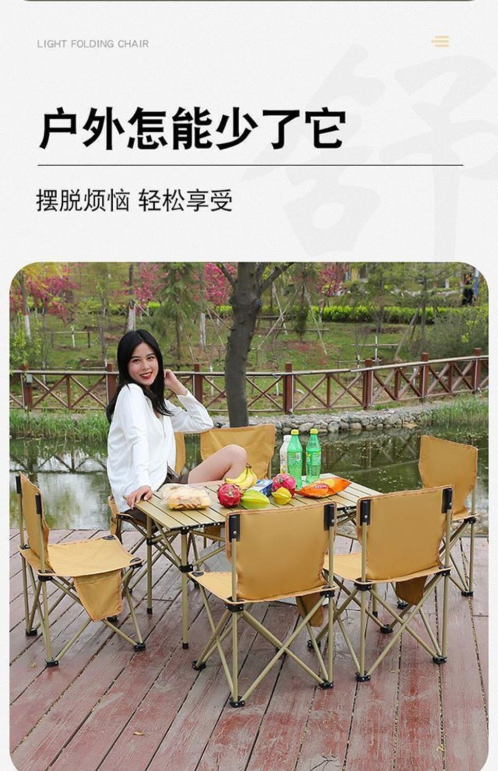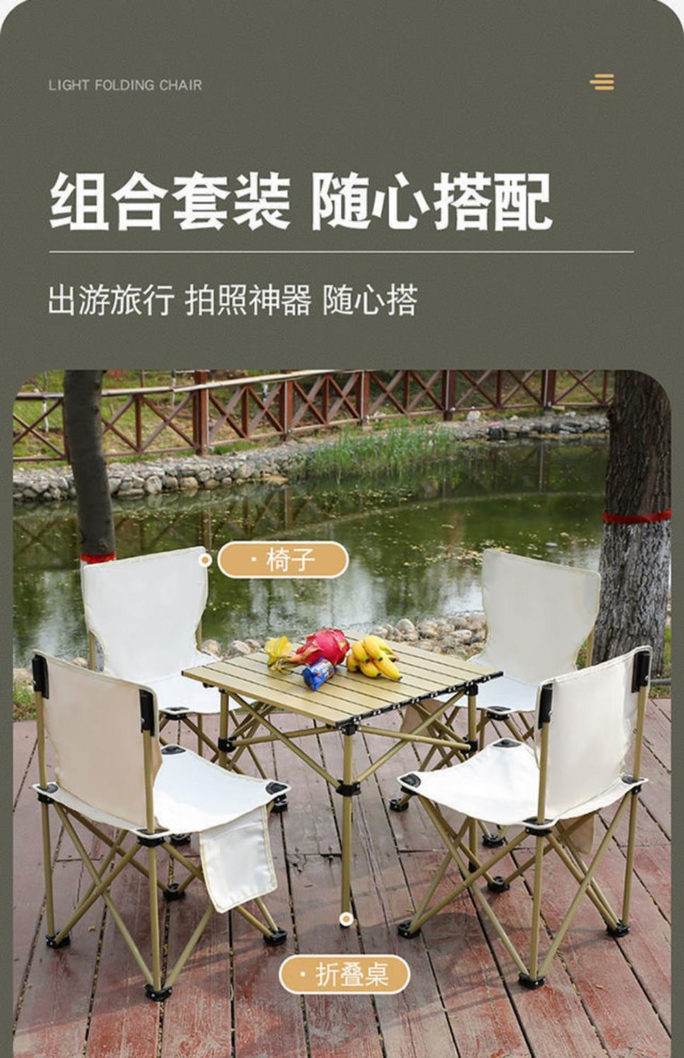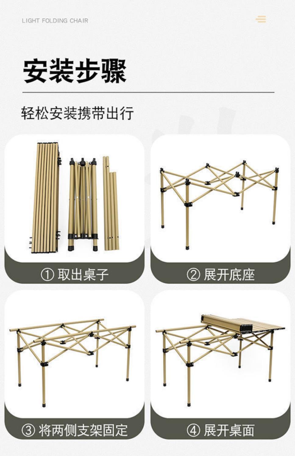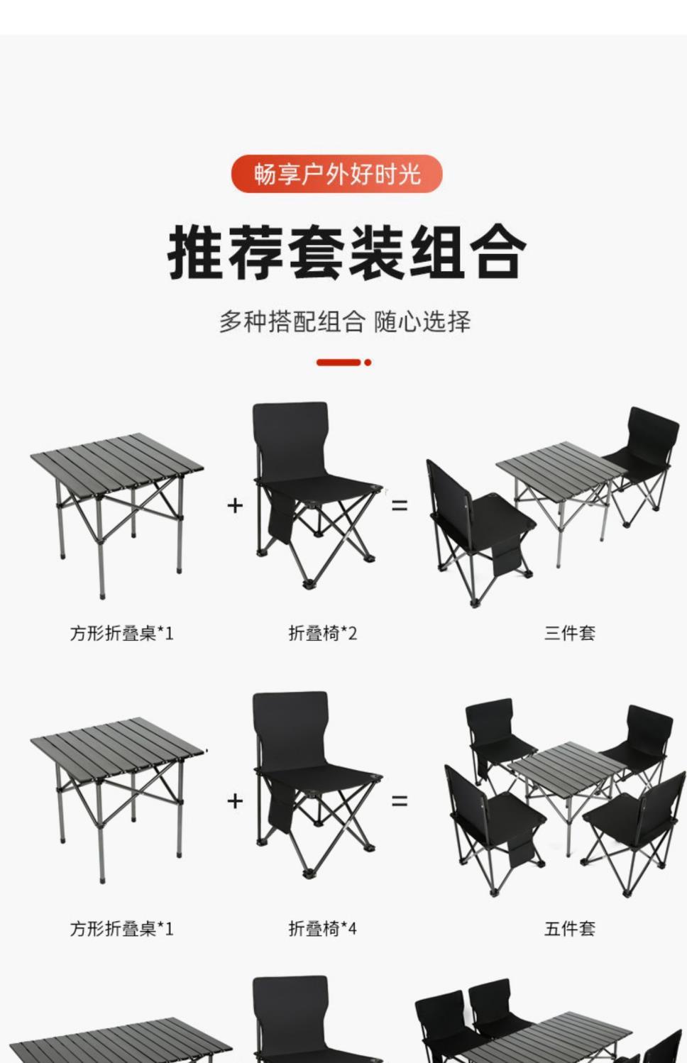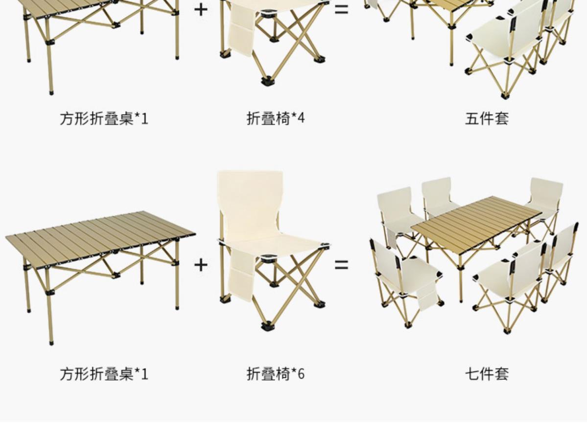 Juego de Mesa y Silla Plegable Mesa Portátil Tipo Rollo de Huevo Picnic Camping Aleación de Aluminio Equipo para BBQ Combinación Ligera