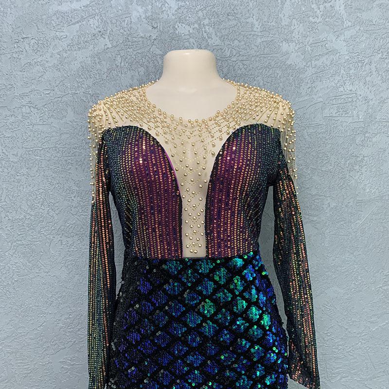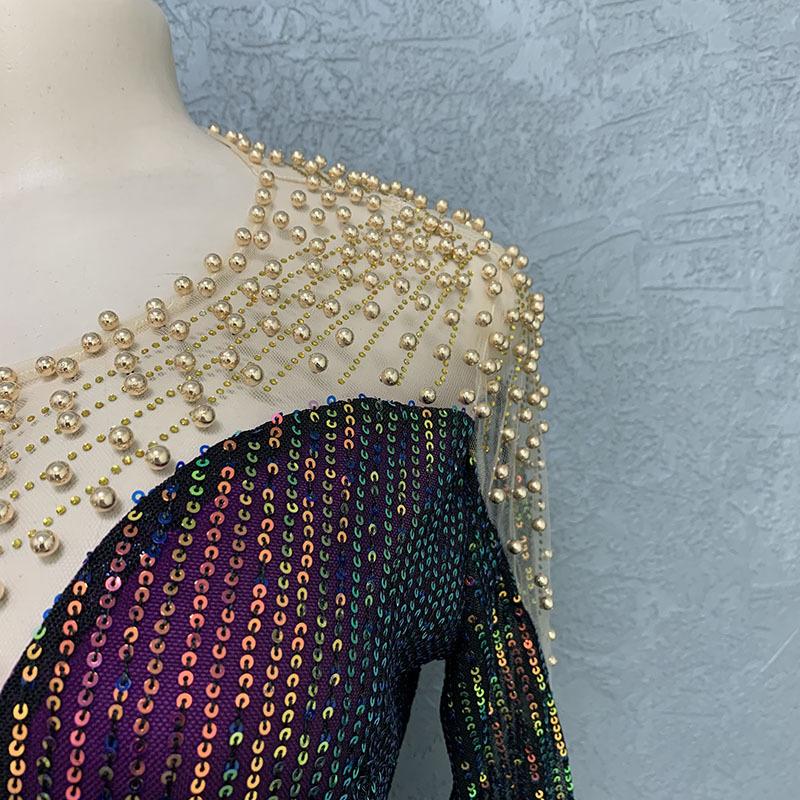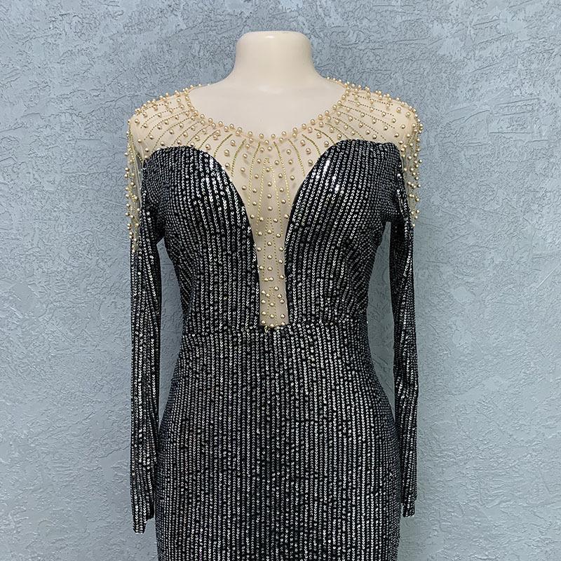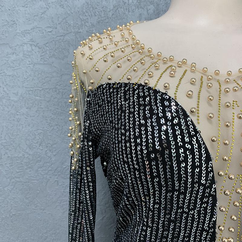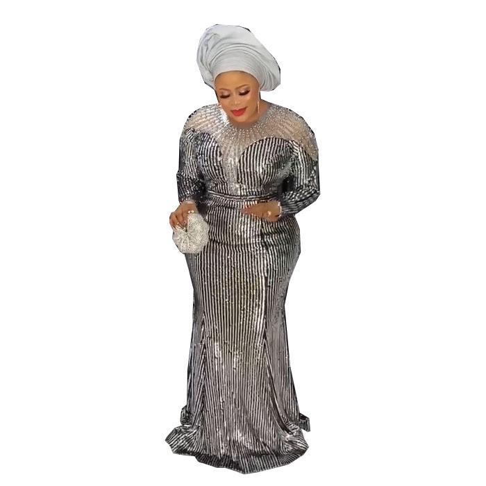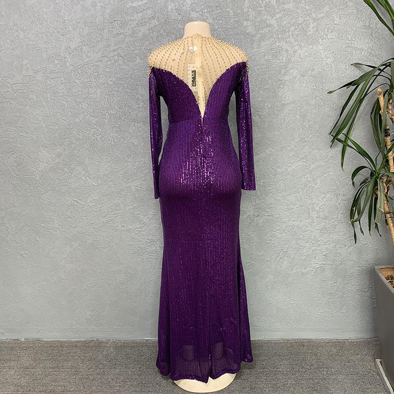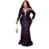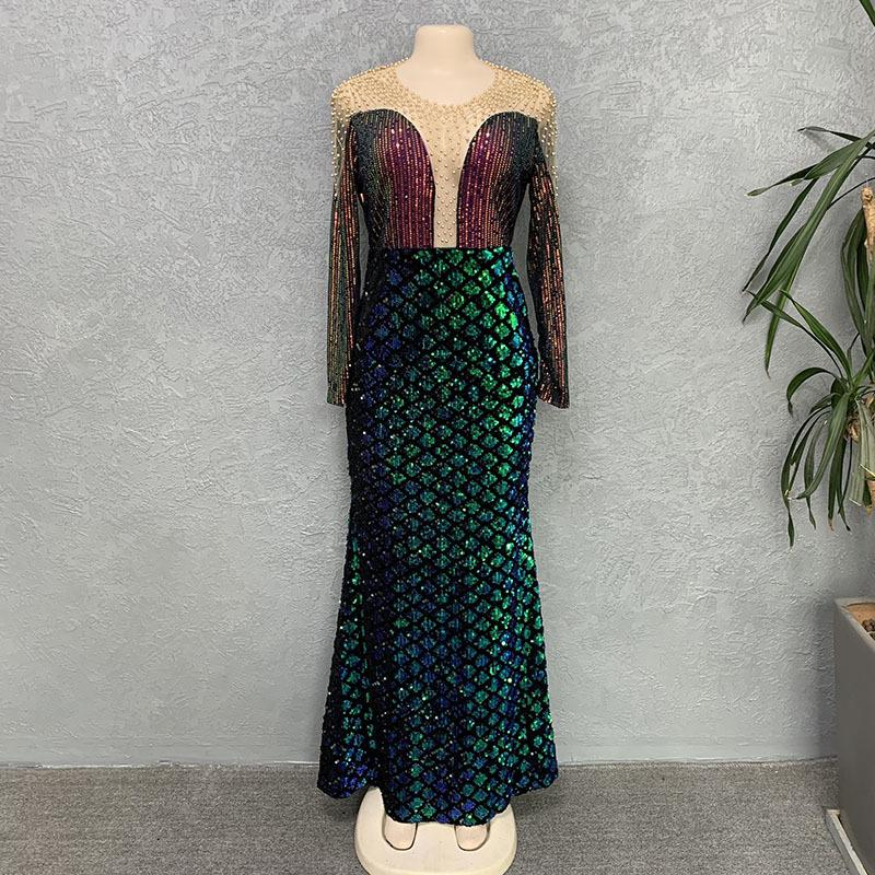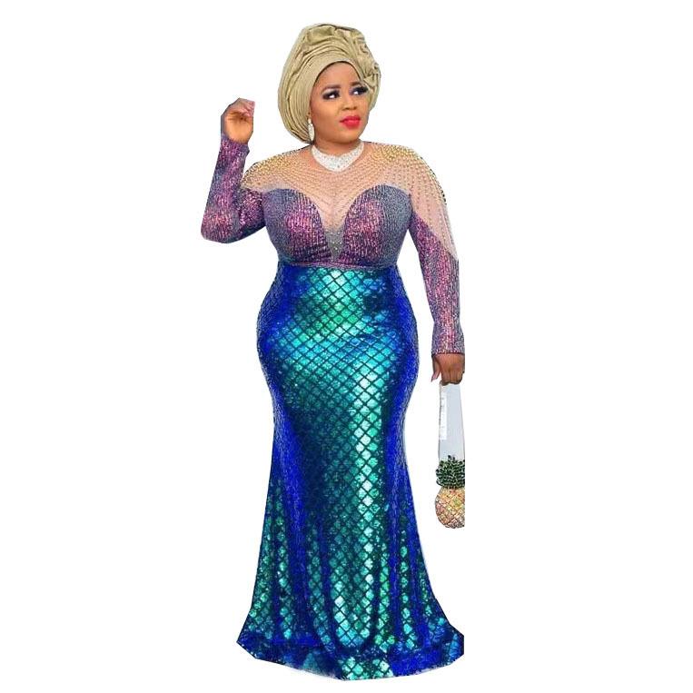 Vestido de noche con cuentas y lentejuelas para mujeres africanas europeas y americanas, vestido de cola de pez con borde cruzado