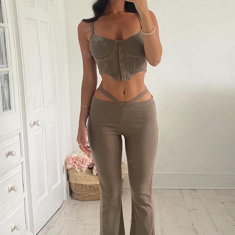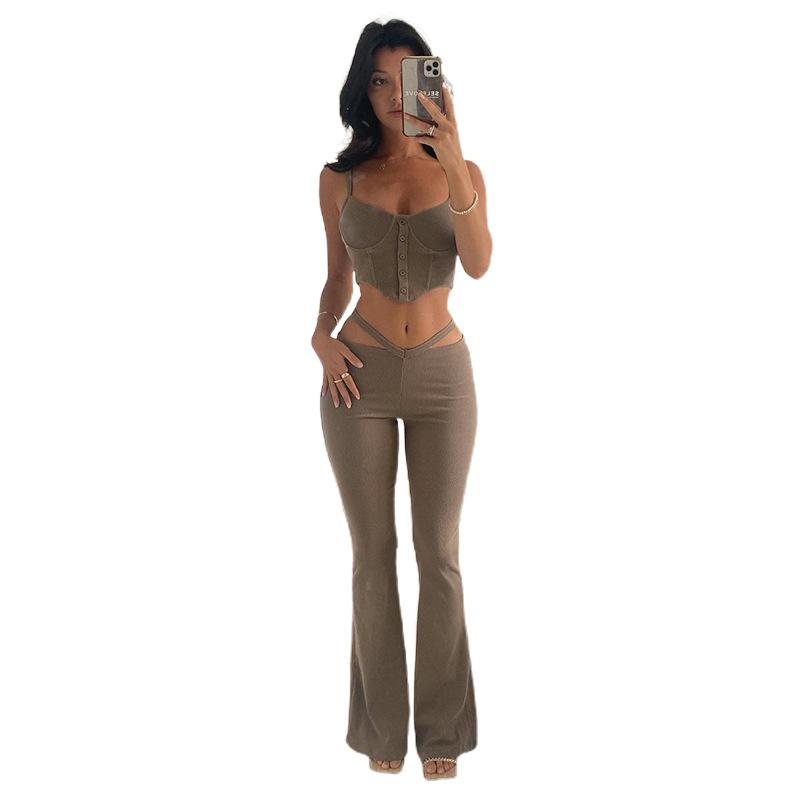 Ropa de mujer europea y americana de primavera y otoño 2022 nueva ebay sexy camisola chaleco irregular traje de pantalones ajustados calados