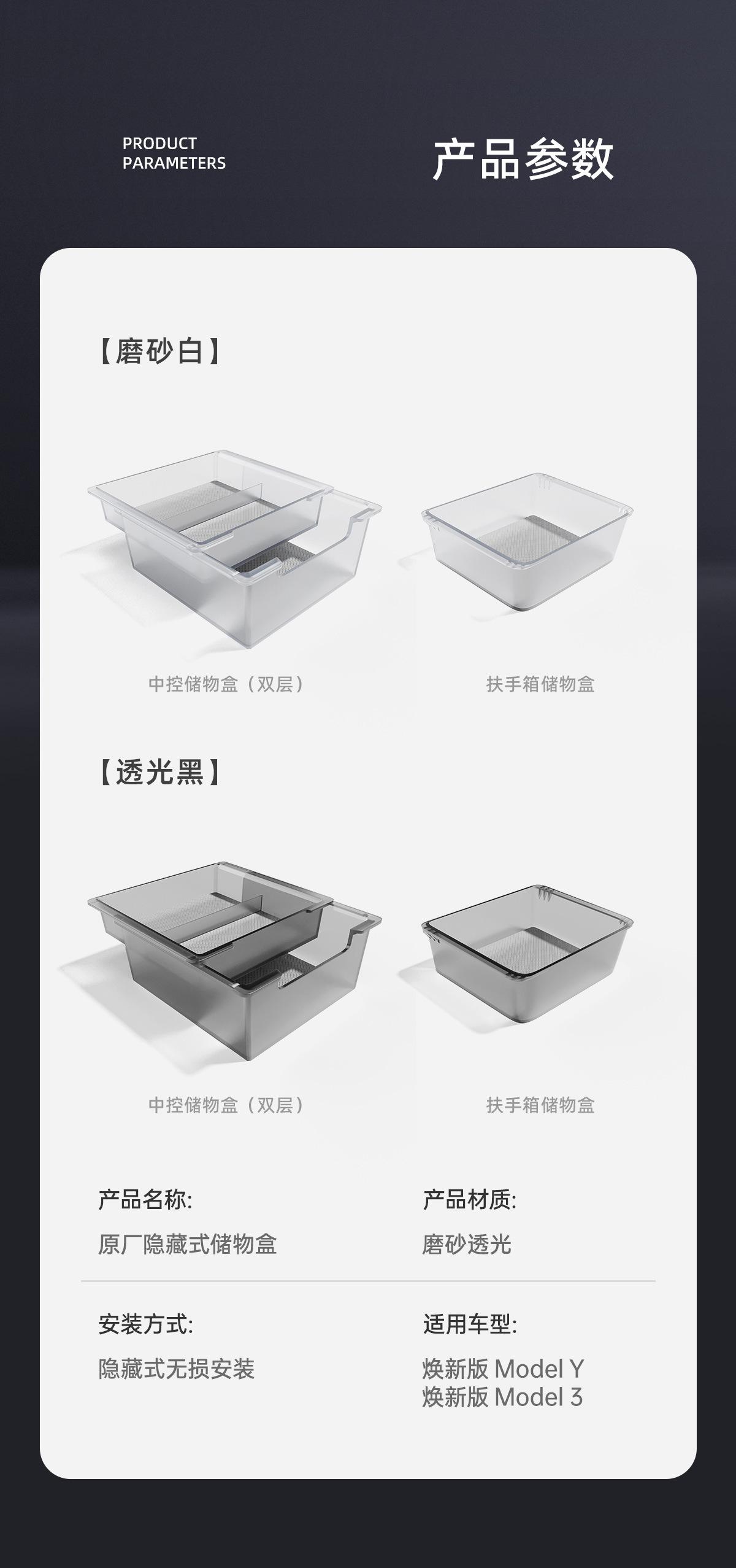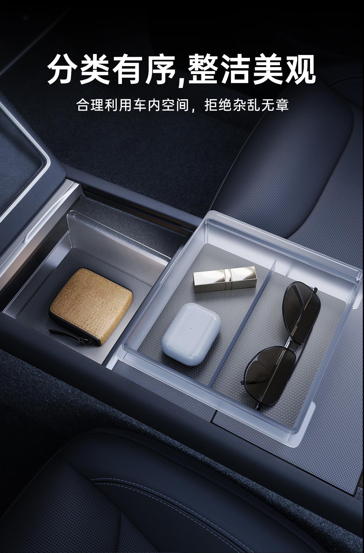 Renewal y double-layer central control storage box - frosted white, Renewed y armrest box under the storage bo...