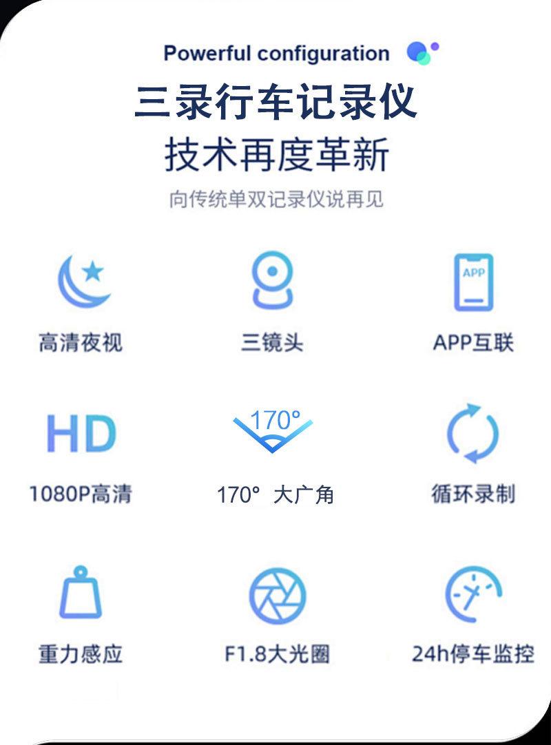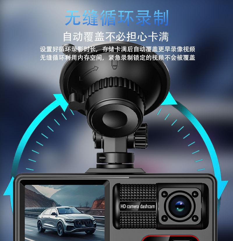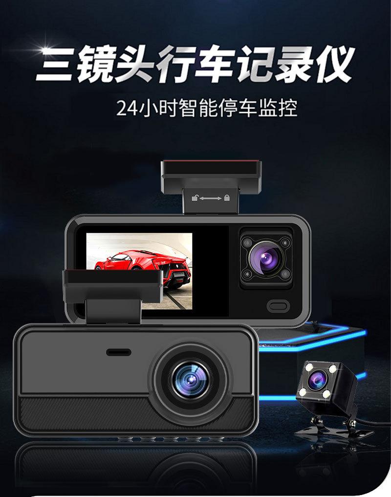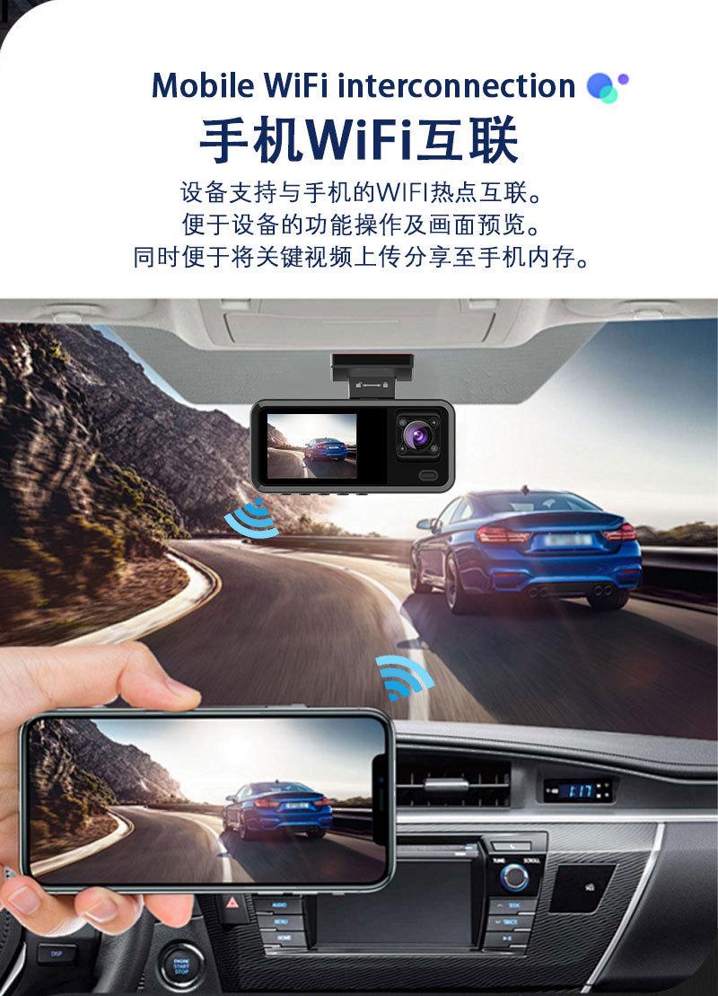 Nuevo grabador de conducción de tres grabaciones de venta caliente 1080P tres lentes conexión wifi visión nocturna grabador de gran angular DVR