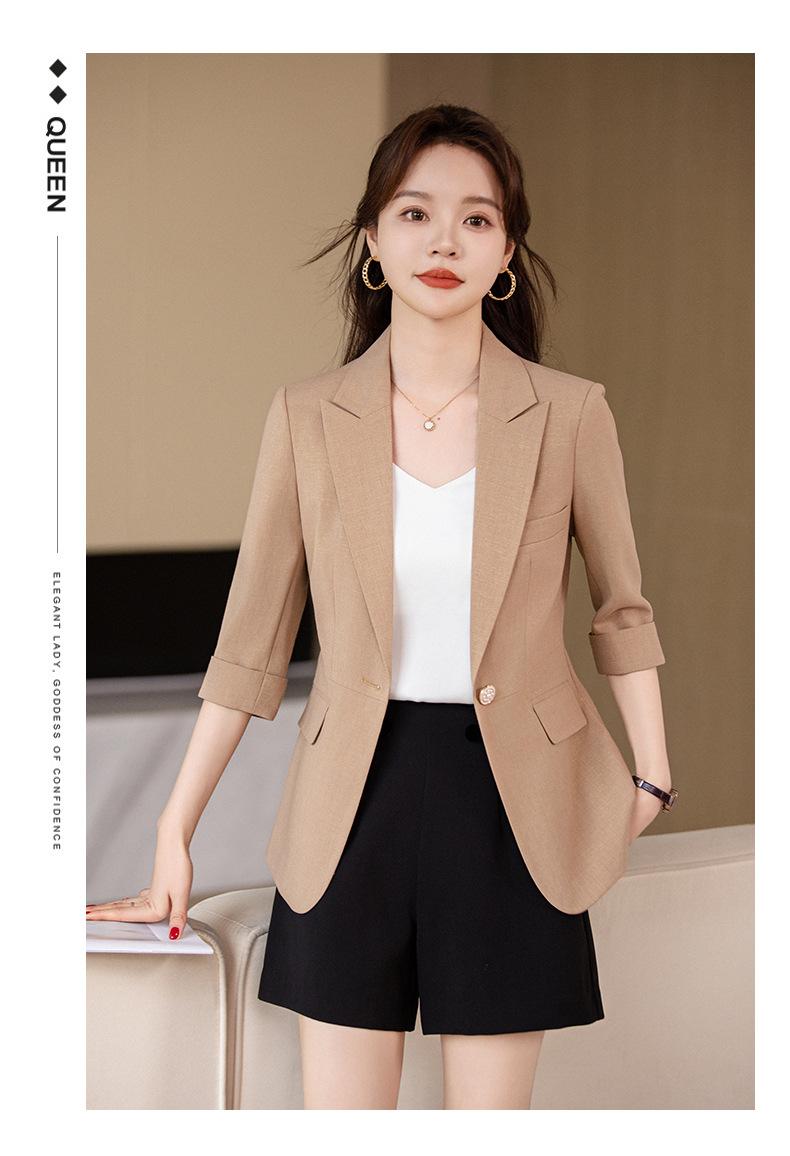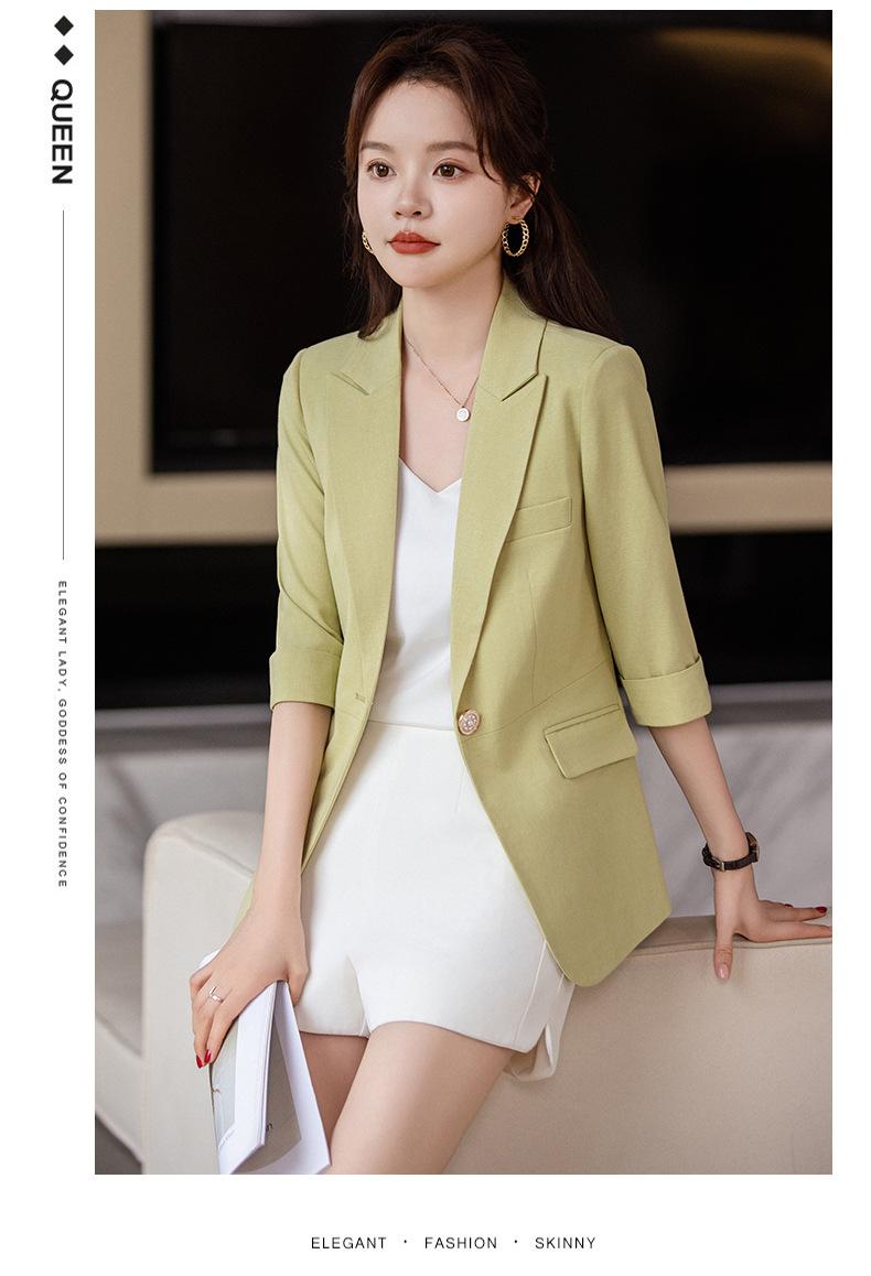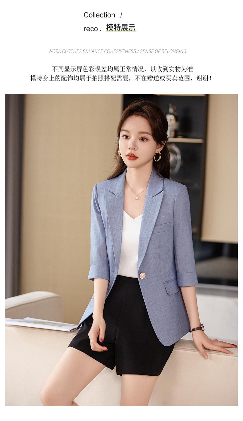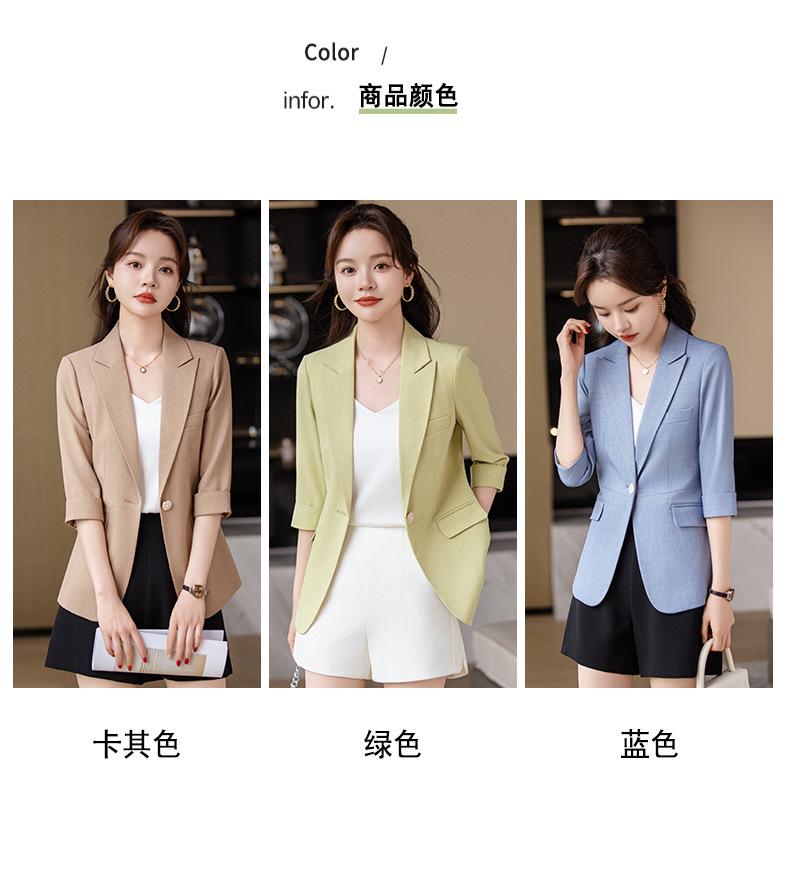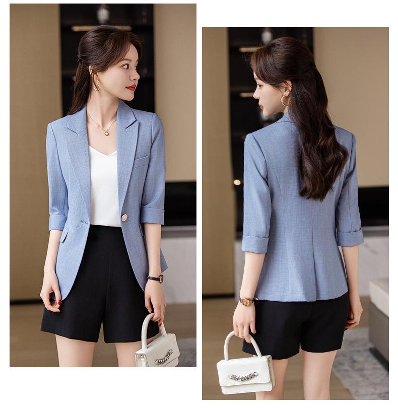 Primavera/verano/otoño 2020 Nuevo Azul profesional casual manga tres cuartos chaqueta cuello traje pequeño para mujer corte ajustado adelgazante moderno