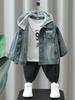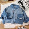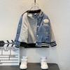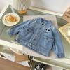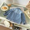[Stock Listo] Cw255029 Chaqueta de Mezclilla para Niño 2025 Producto Nuevo de Primavera Chaqueta de Mezclilla Lavada y Rociada Blanca