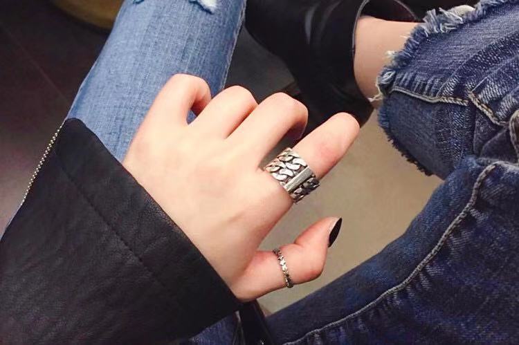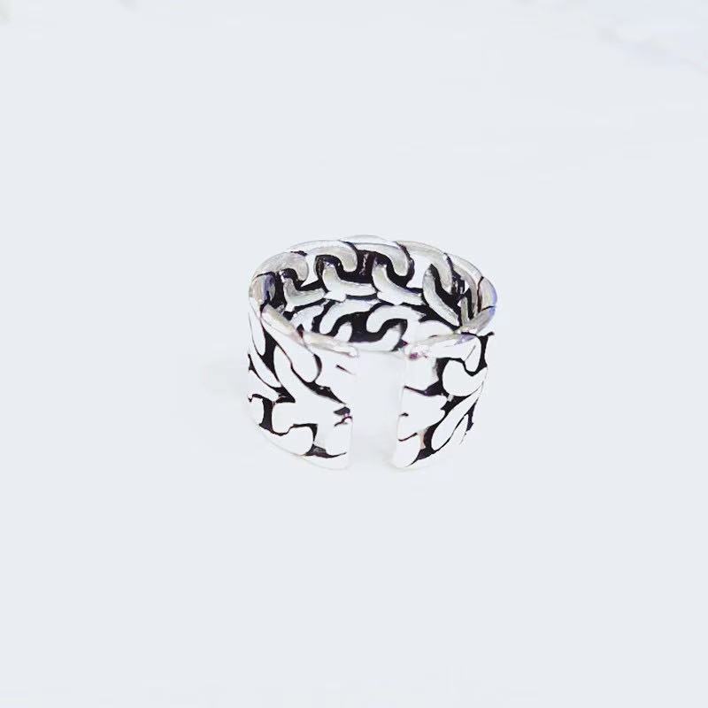 Anillo de Cadena Simple Creativo Plata Tailandesa Estilo Coreano Moderno Retro Envejecido Ancho Anillo Abierto Venta al por Mayor