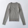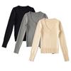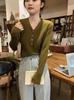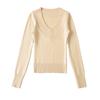 Suéter de punto de manga larga con cintura ajustada para mujer, estilo nuevo, otoño e invierno 2024, elegante jersey con cuello en V y manga larga, corto interior.