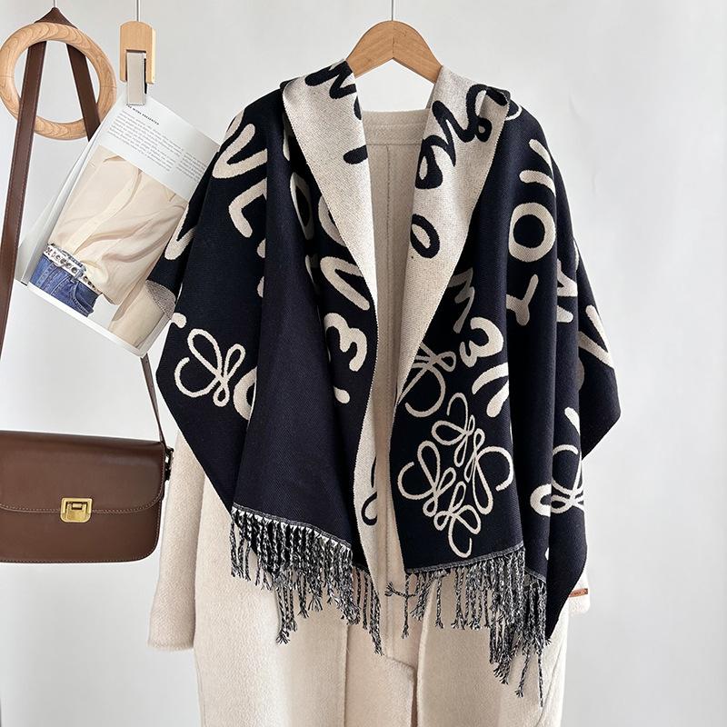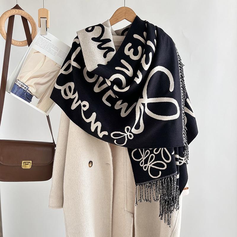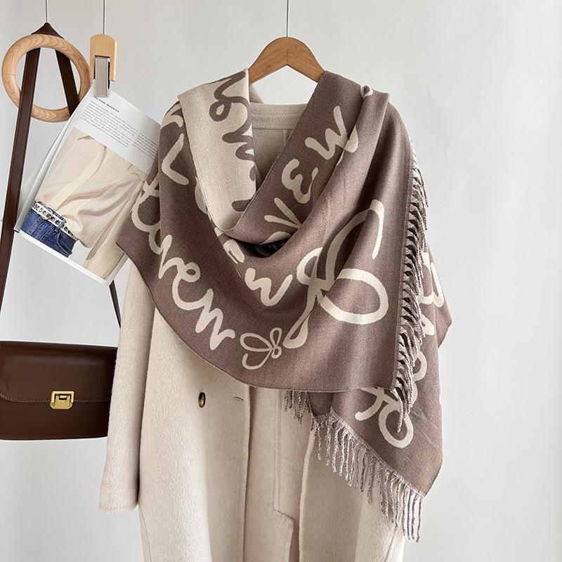Bufanda de cachemir con letras nuevas de otoño e invierno para mujer, estilo europeo y americano, de alta gama, informal, cálida.