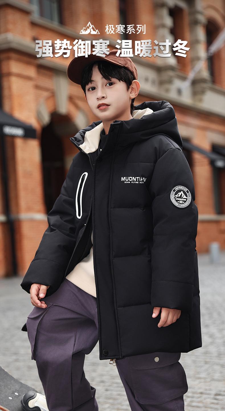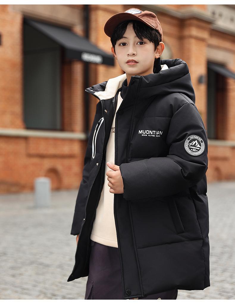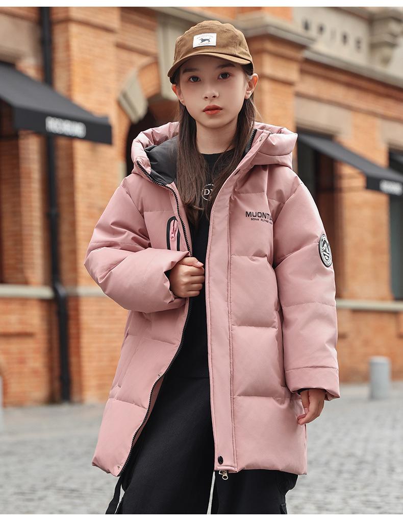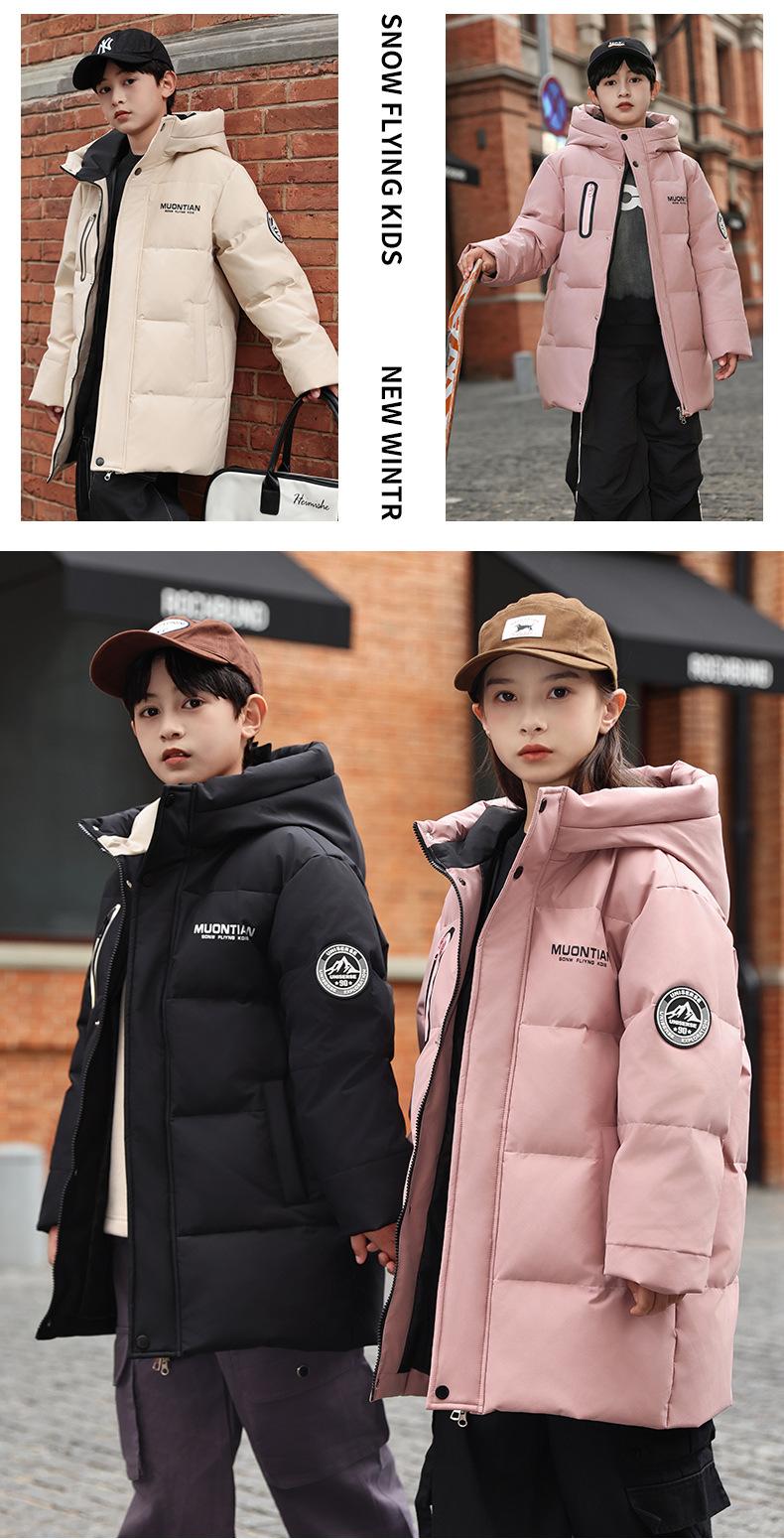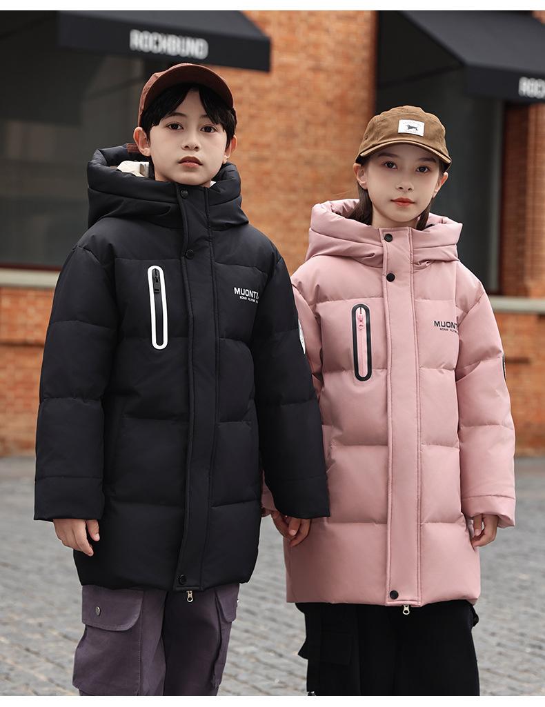 Chaqueta larga con capucha de plumón de pato blanco y negro para niños y niñas, nueva chaqueta de invierno 2024