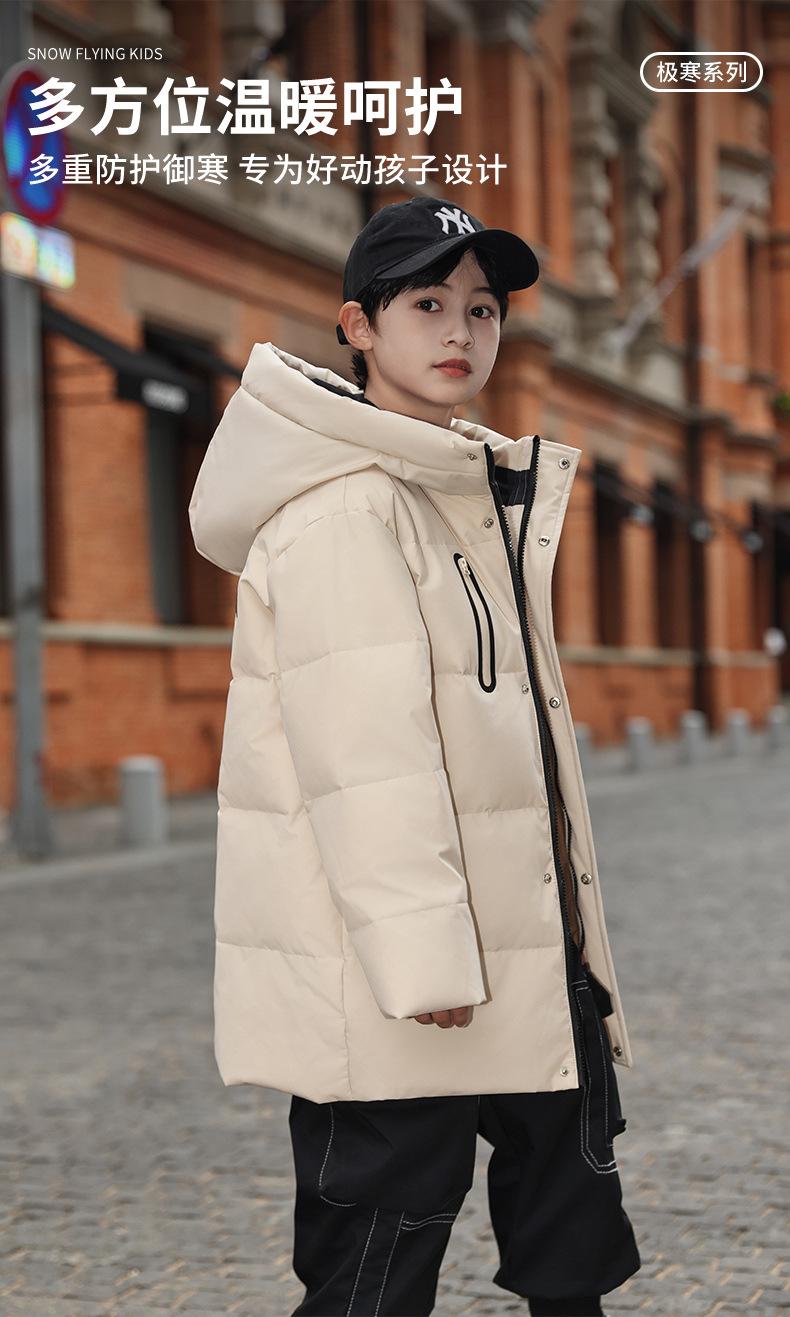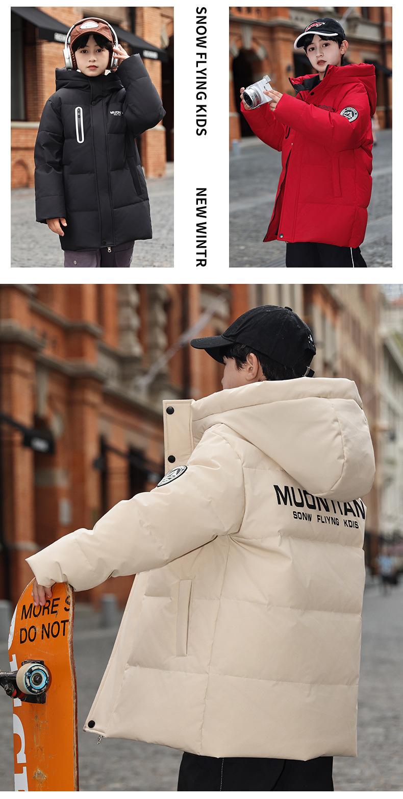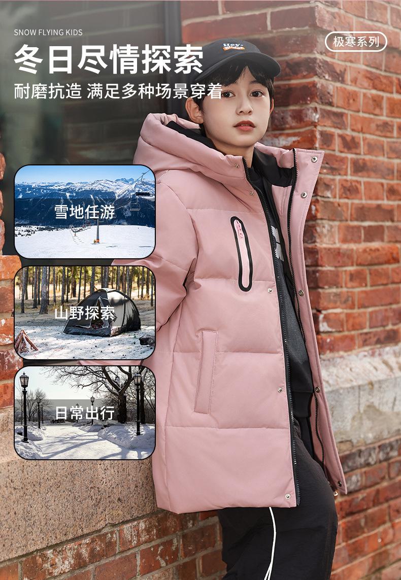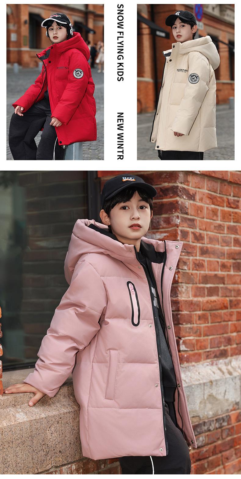Chaqueta larga con capucha de plumón de pato blanco y negro para niños y niñas, nueva chaqueta de invierno 2024