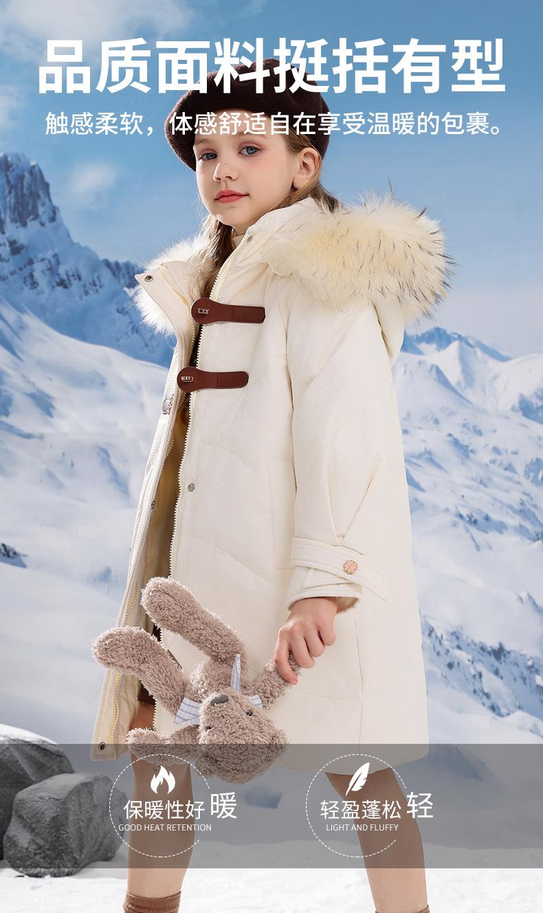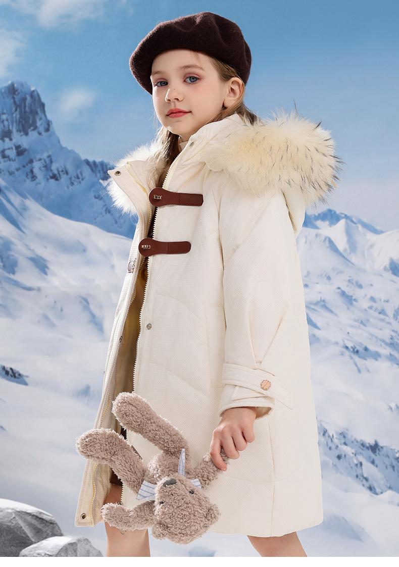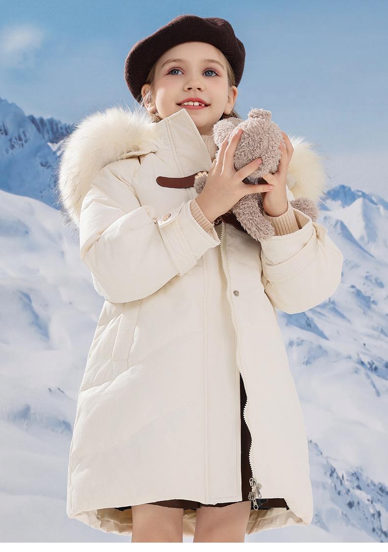 Chaqueta de plumón para niñas, de longitud media, 2023, nueva, de invierno para niños medianos y grandes, de plumón de pato blanco, de color sólido, chaqueta informal gruesa