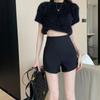 Pantalones cortos deportivos elásticos de cintura alta para mujer, estilo coreano, de verano, estilo europeo y americano, para yoga