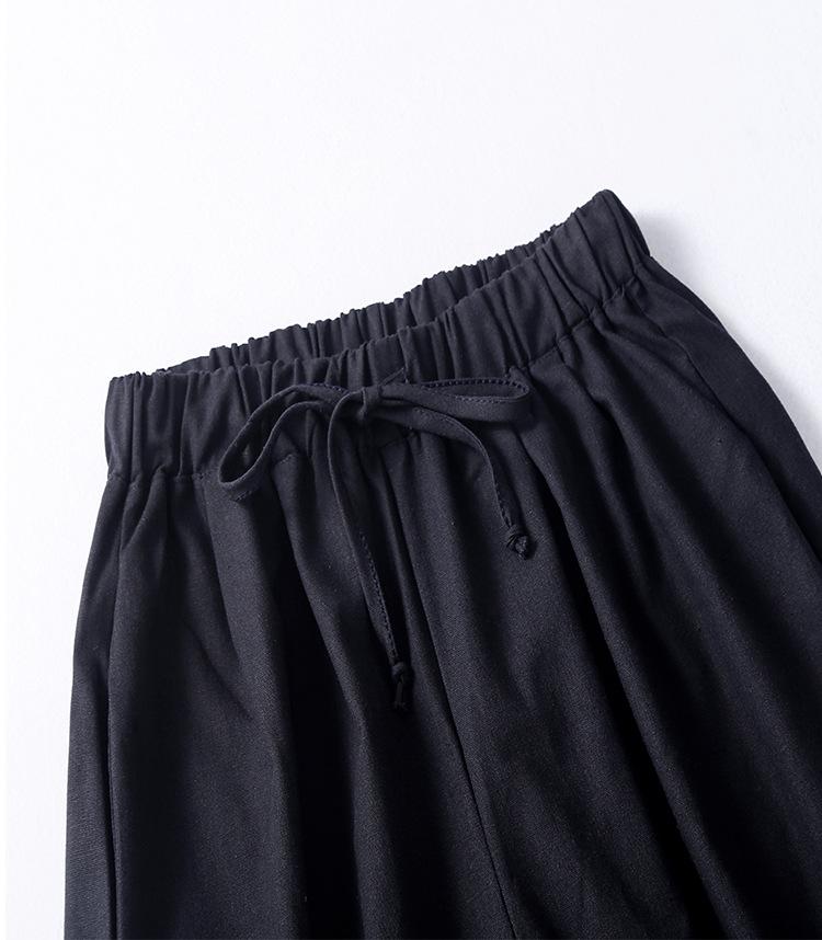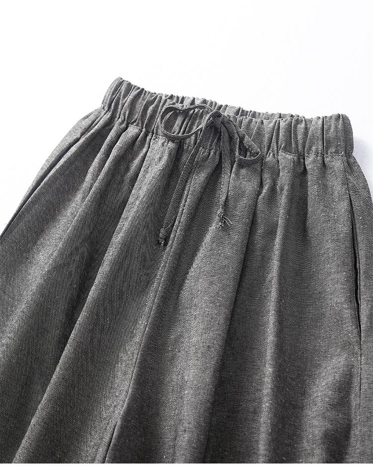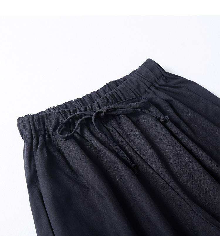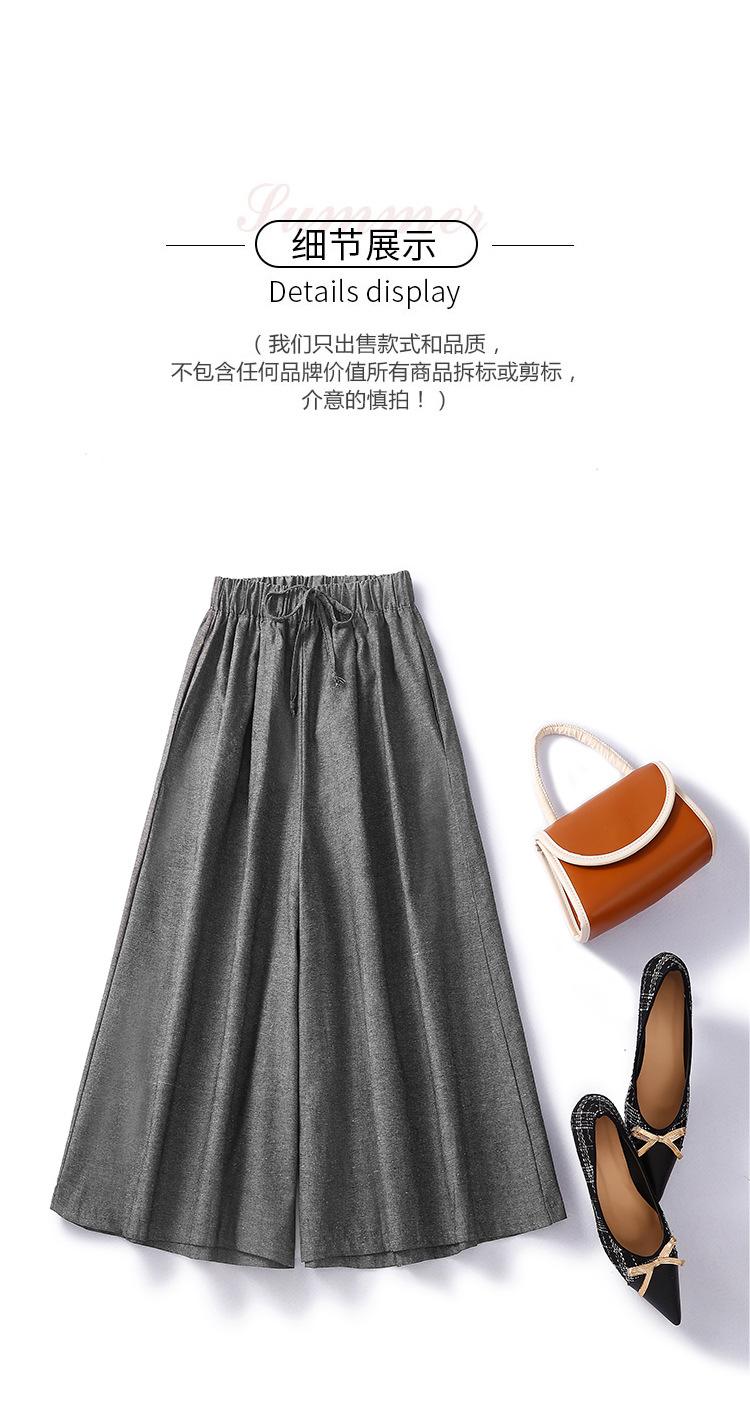 Pantalones de pierna ancha informales ajustados de cintura alta holgados de algodón y lino de verano 2024 para mujer #1287