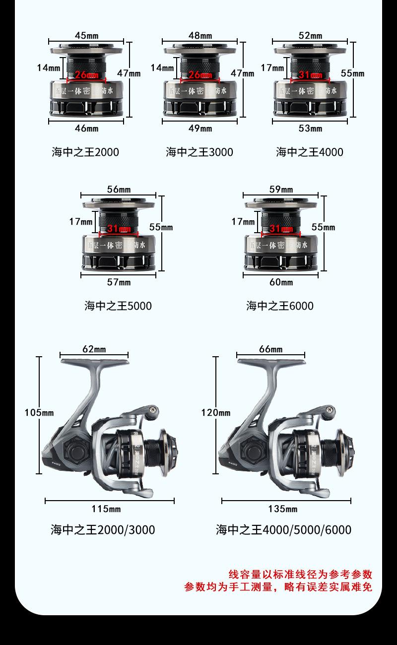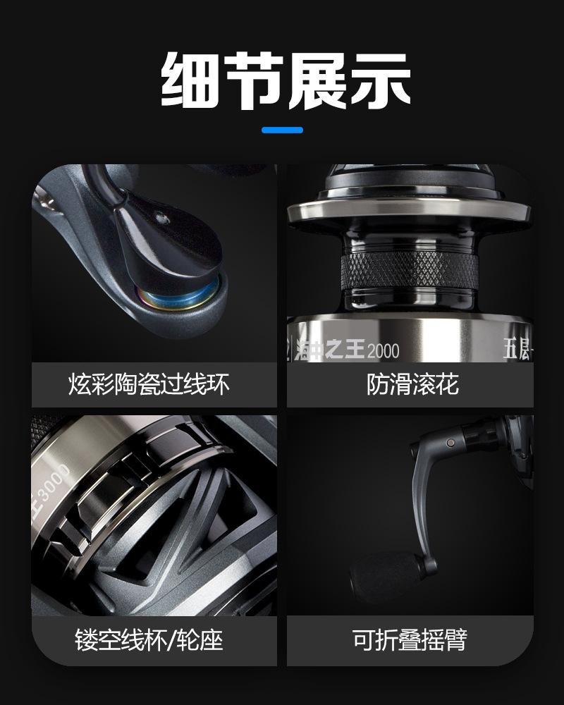 Rueda de pesca de doble riel, sellada y antiagua de mar, de metal, para pesca en carretera oblicua, modelo King of the Special Ben Sea.