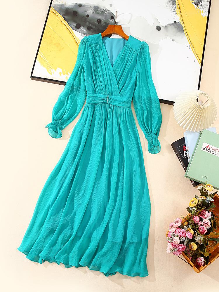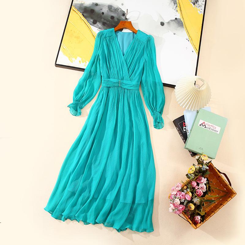 Vestido de Seda Primavera 2025 Nuevo Elegante Celebridad Francés Hora del Té Falda Platycodon Seda de Morera Vestido Vacacional Junto al Mar