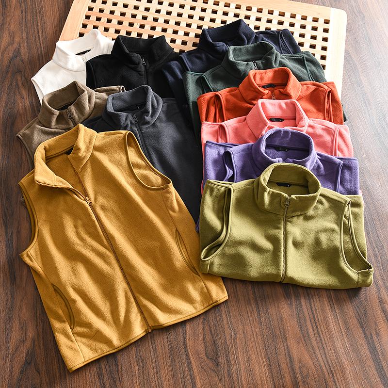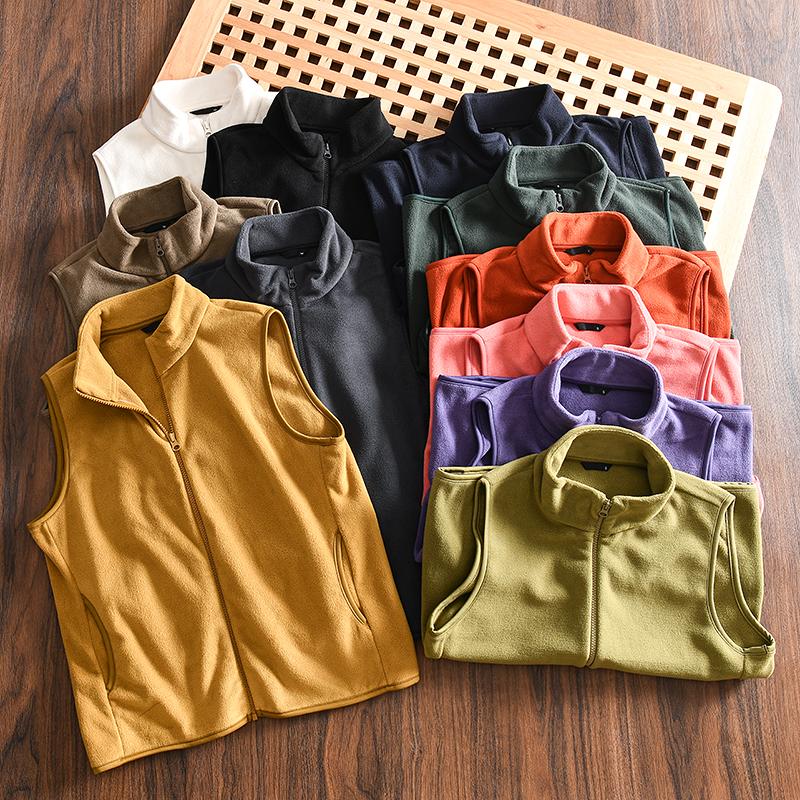 ¡El cabello de 11 colores de la pareja! ¡Delicado vellón de doble cara! Chaleco cálido de cuello alto de color sólido para hombres y mujeres de otoño e invierno