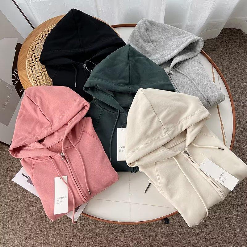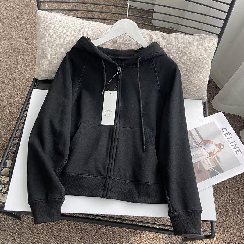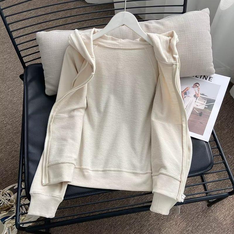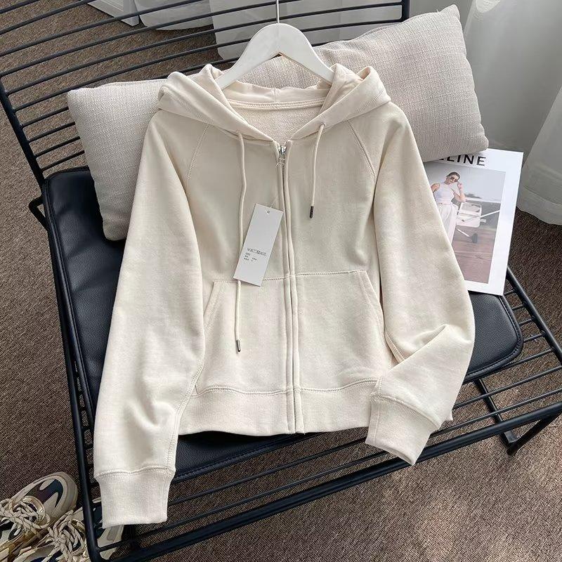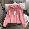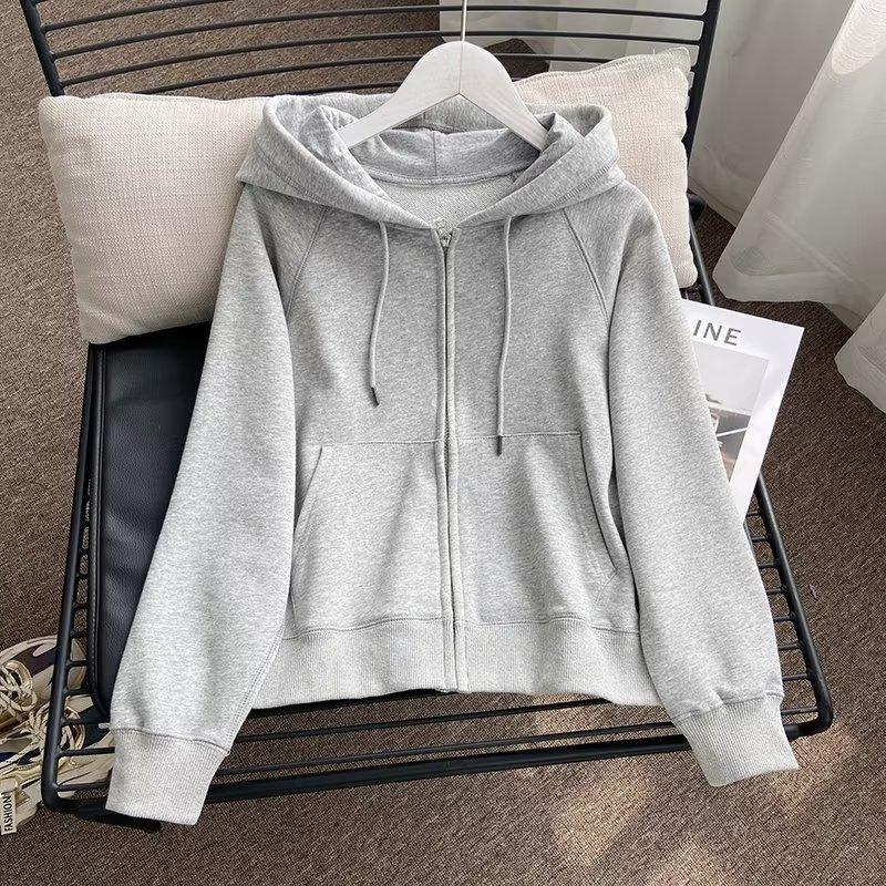 Estilo Japonés Estilo Otoño Deportes Casual Cárdigan con Capucha y Cremallera Sudadera de Manga Larga Chaqueta Estudiantes Femeninas Color Puro Estilo Corto