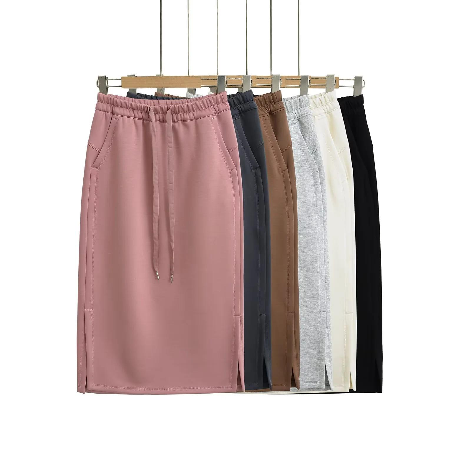 Falda Recta Casual Gris Vestido Deportivo para Mujer Primavera y Verano Nuevo Primavera y Verano Falda Midi con Abertura en la Cadera