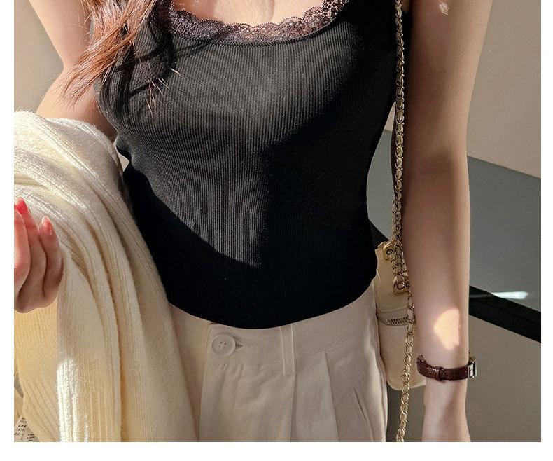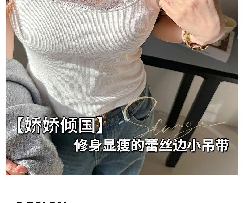 Chaleco pequeño de encaje con tirantes para primavera y verano para mujer, ajustado, adelgazante, sin mangas, diseño sexy y sensual.