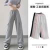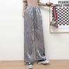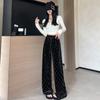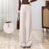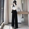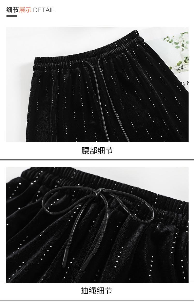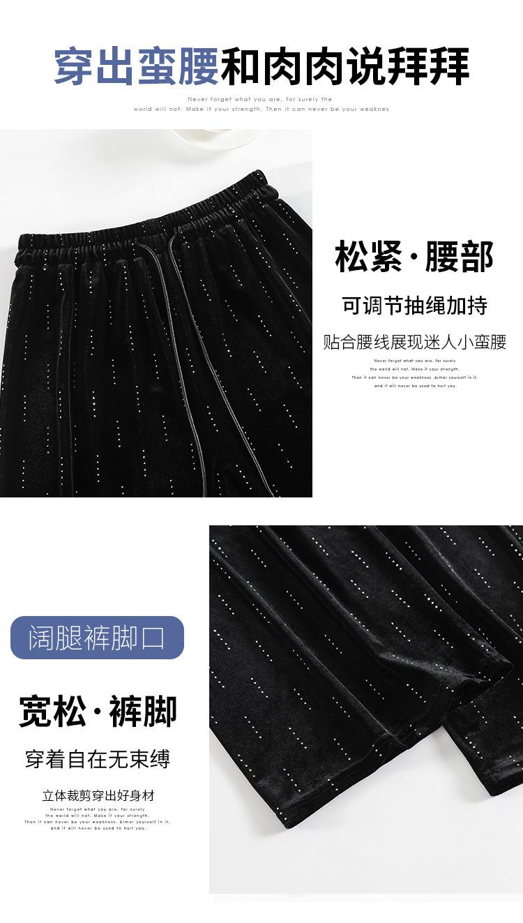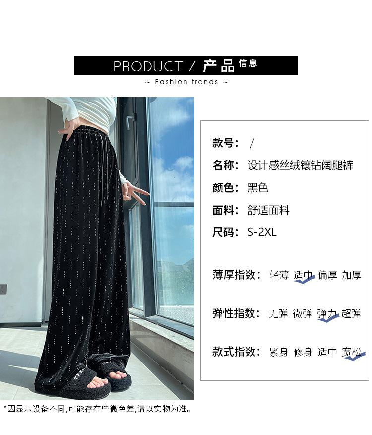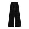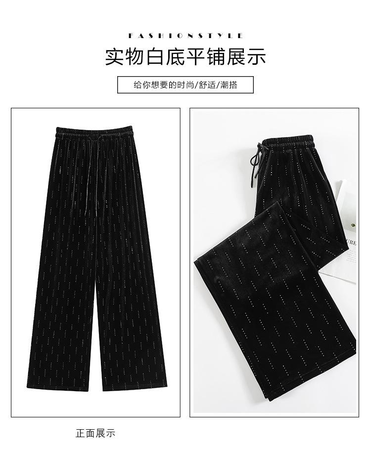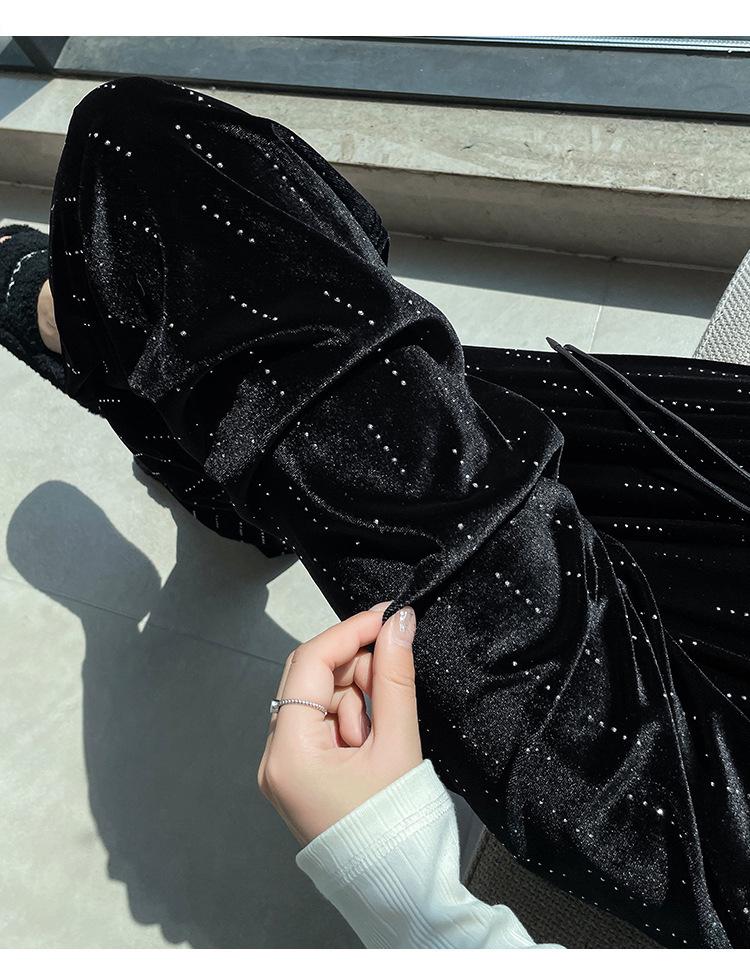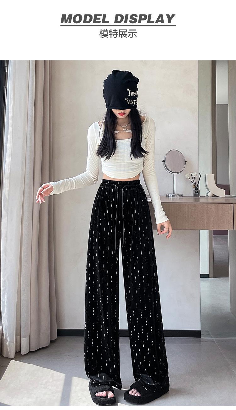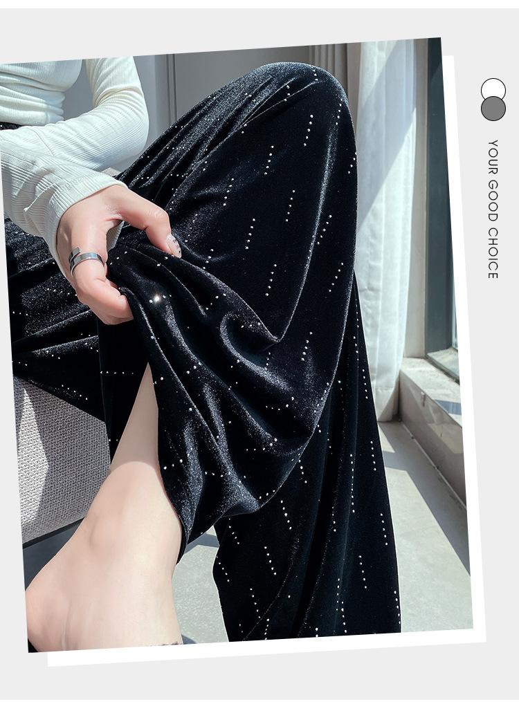 Pantalones Casuales de Terciopelo Negro con Pedrería para Mujer, Otoño 2025, Pantalones Rectos Drapeados con Cordón, Pantalones Adelgazantes de Cintura Alta de Pierna Ancha
