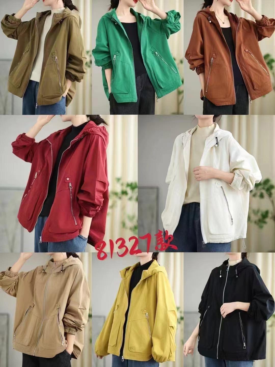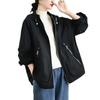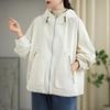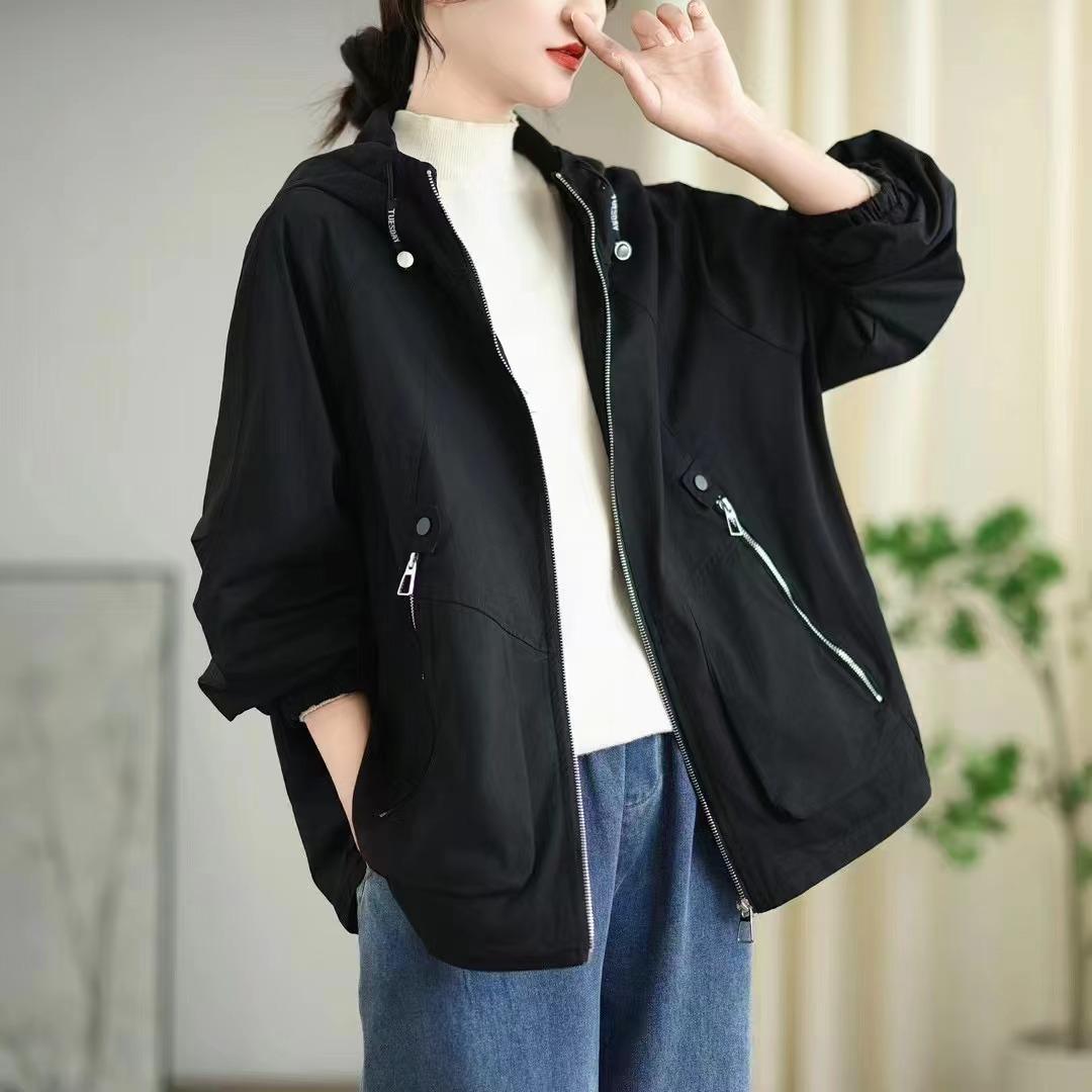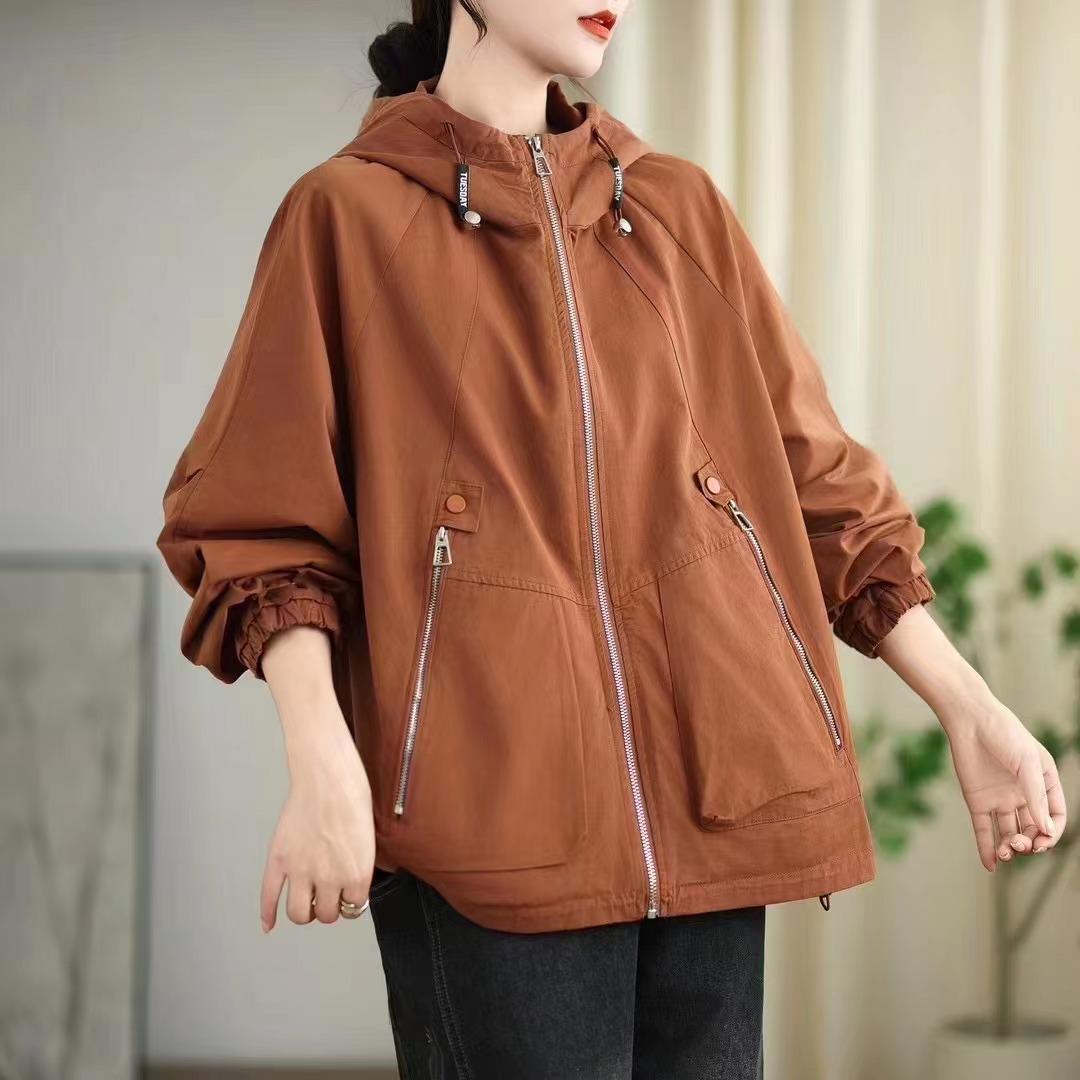 Abrigo con capucha y cremallera corta para mujer, cortavientos, otoño 2024, nuevo, de algodón, color sólido, chaqueta holgada a la moda