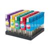 Es ligero y de apariencia hermosa. Está disponible en cinco colores. La capucha metálica tiene un gancho interior. Es un encendedor de plástico. Tiene un gran volumen de ventas y es muy apreciado por los clientes.