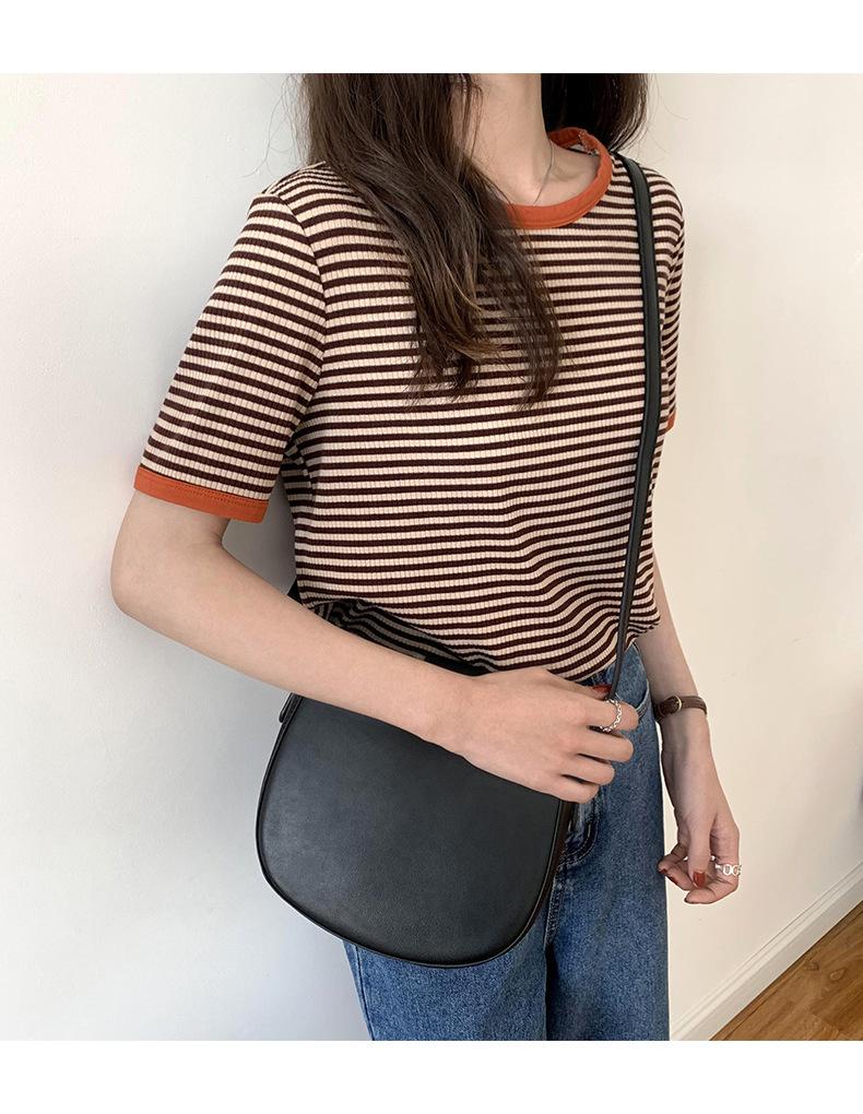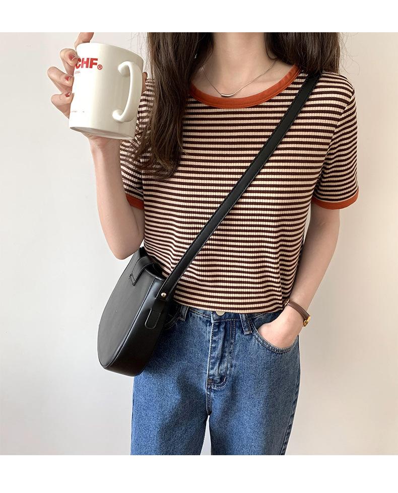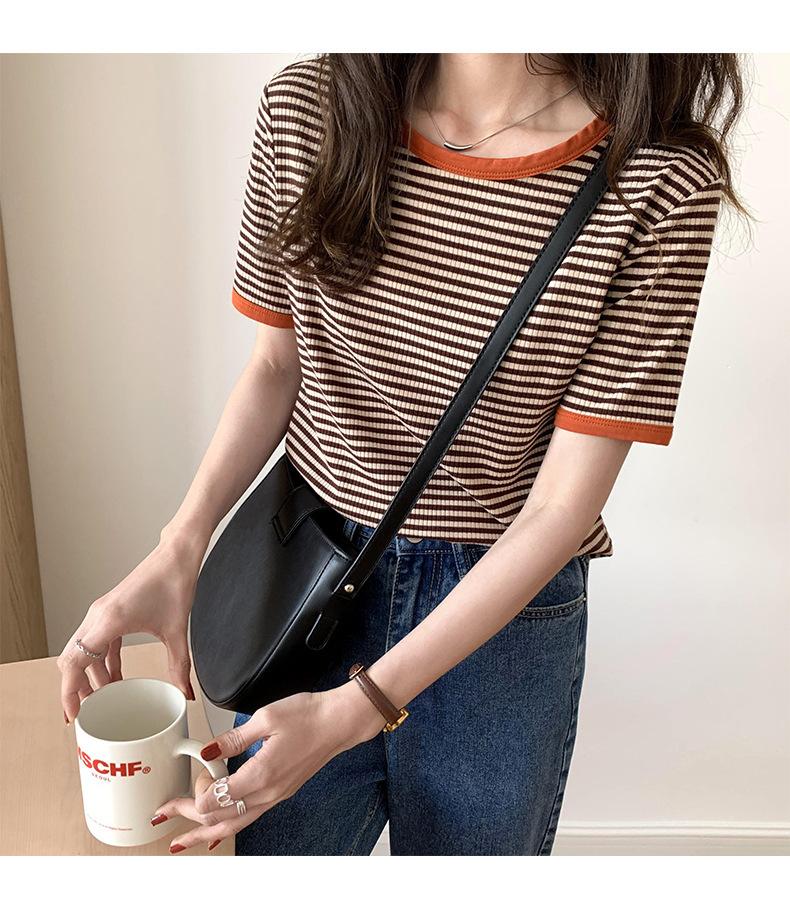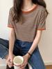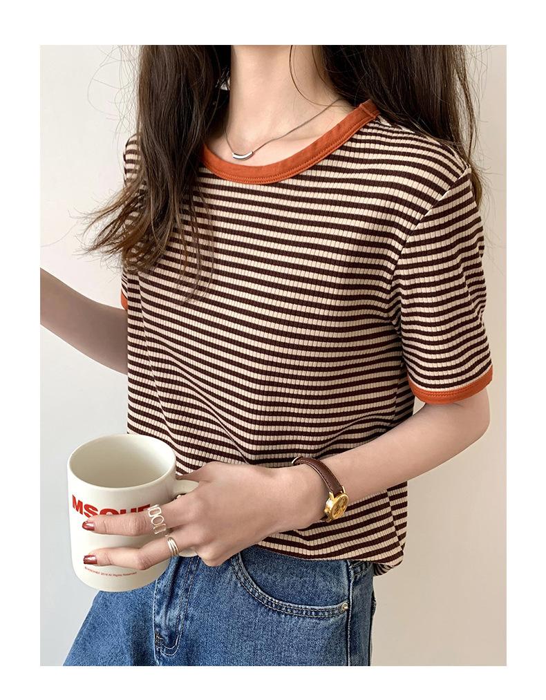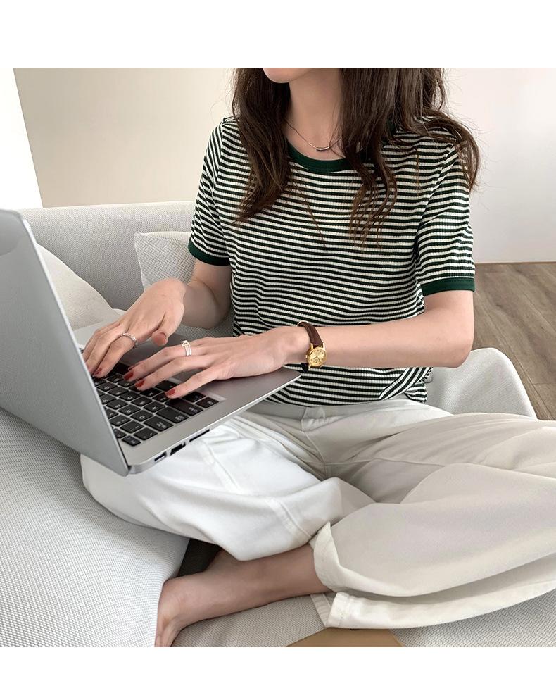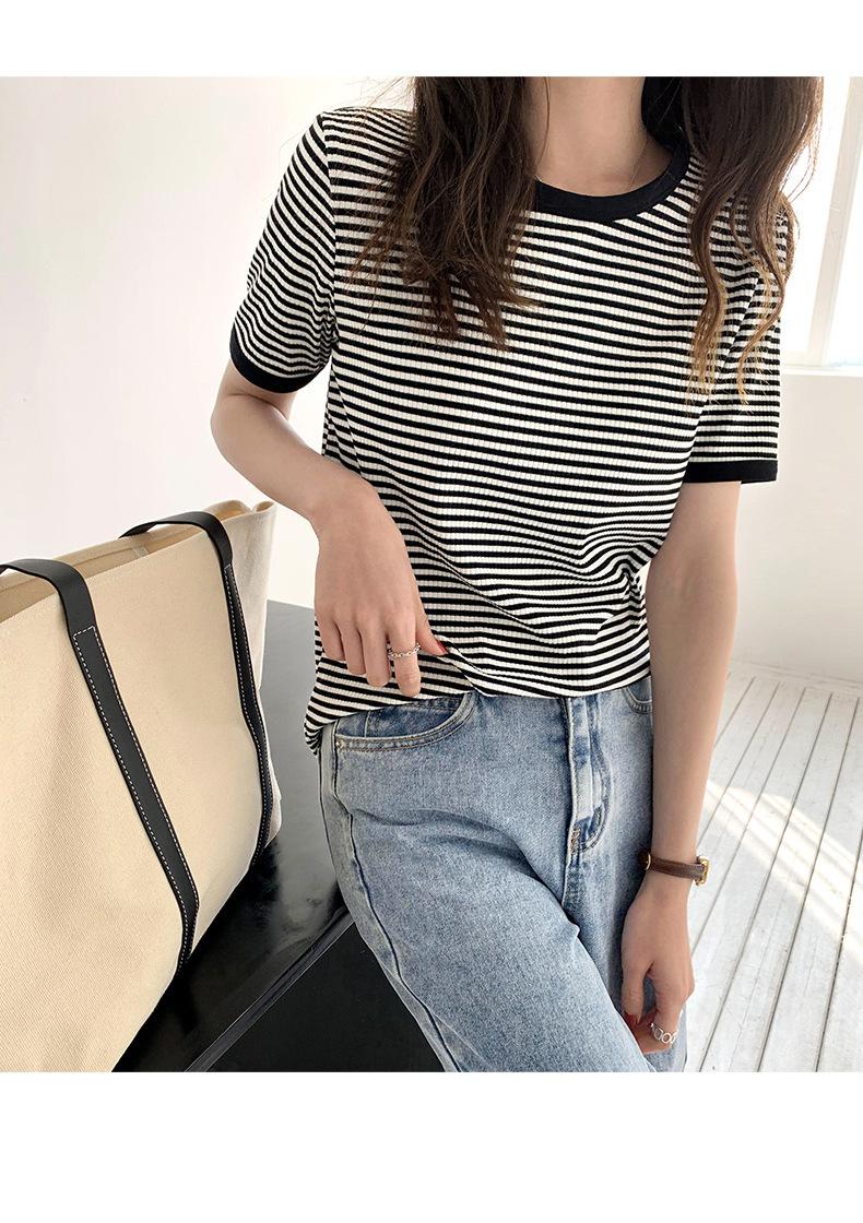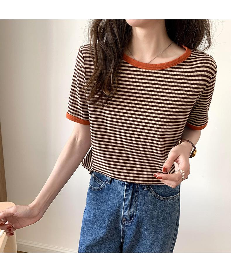 Camiseta básica de manga corta a rayas con cuello redondo para mujer, verano 2025, nuevo estilo coreano, diseño de nicho, top informal interior