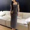 Vestido de mujer de manga corta con cintura ajustada y costuras de alta gama, estilo viento puro, diseño pequeño