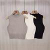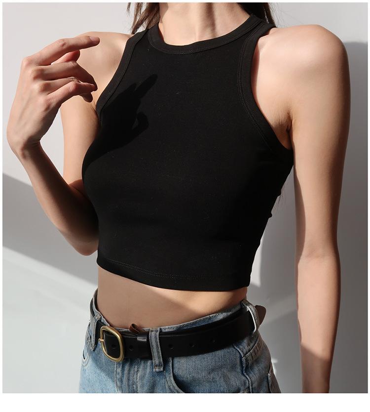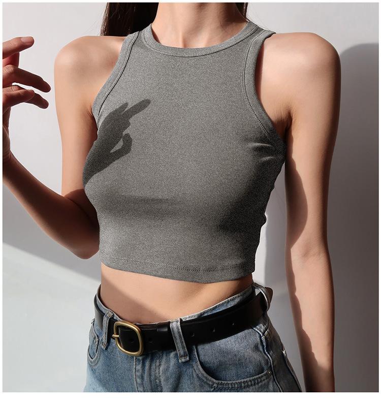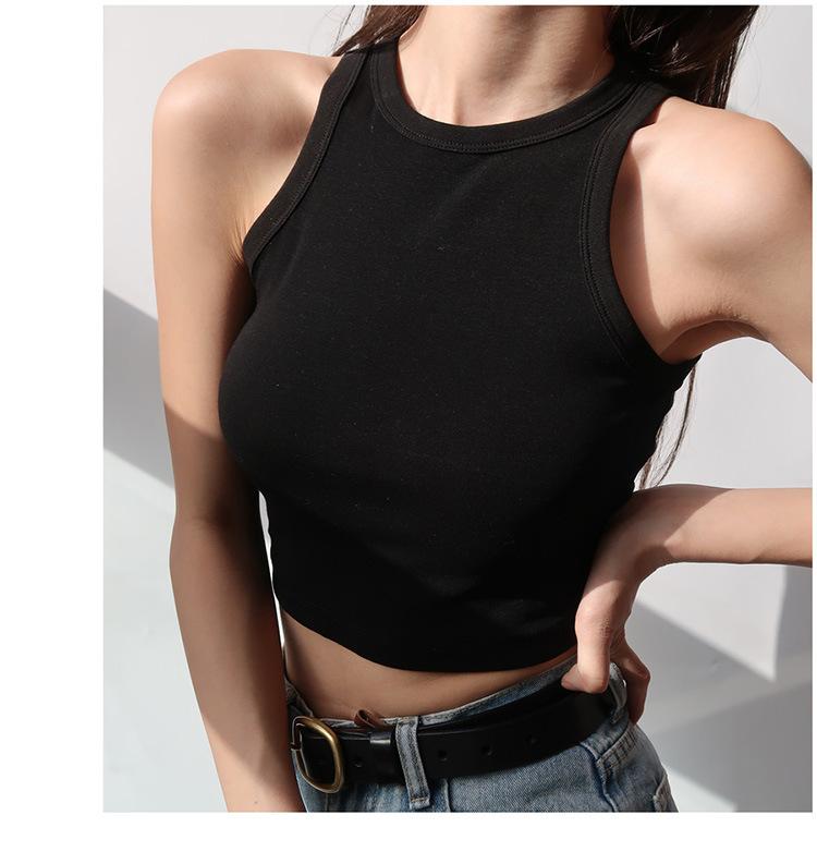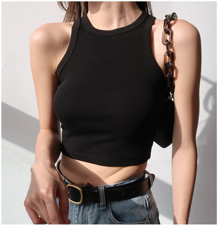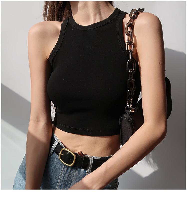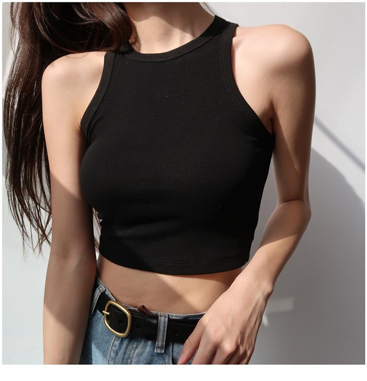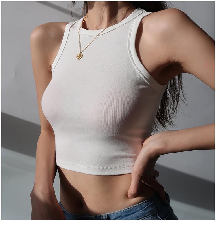 Chaleco blanco en forma de I para mujer, prenda exterior sin mangas, con tirantes, prenda interior corta, diseño con base de punto con hilos, para primavera y verano.
