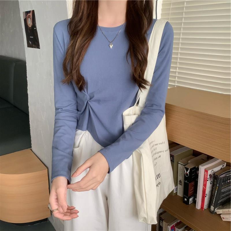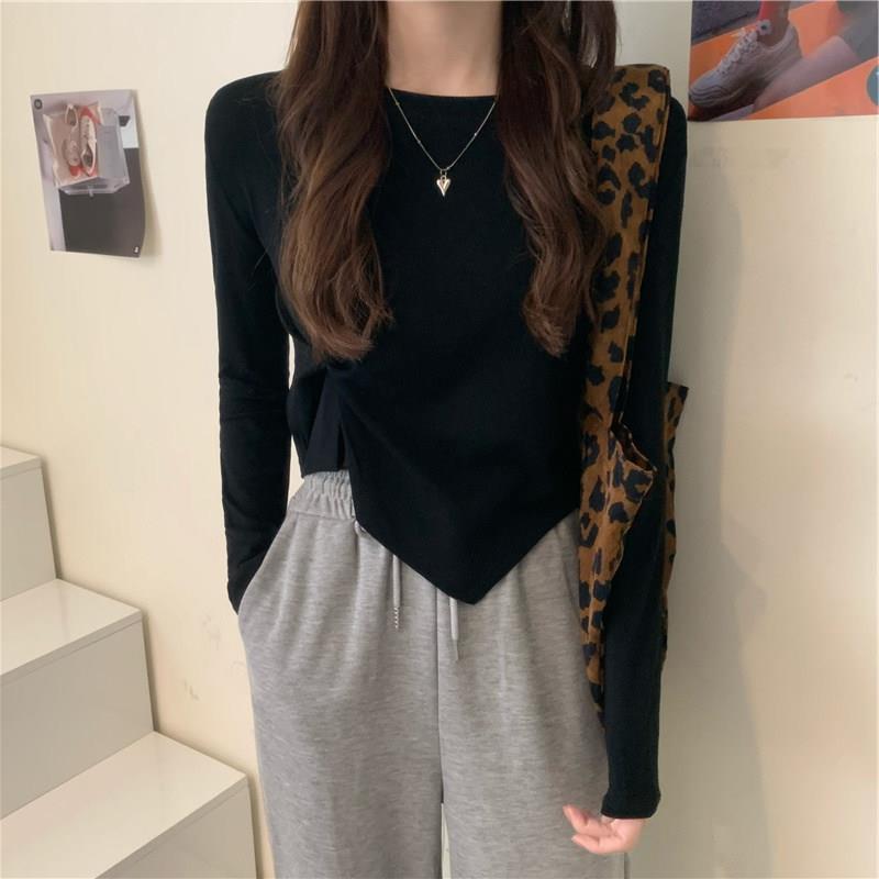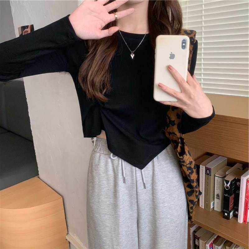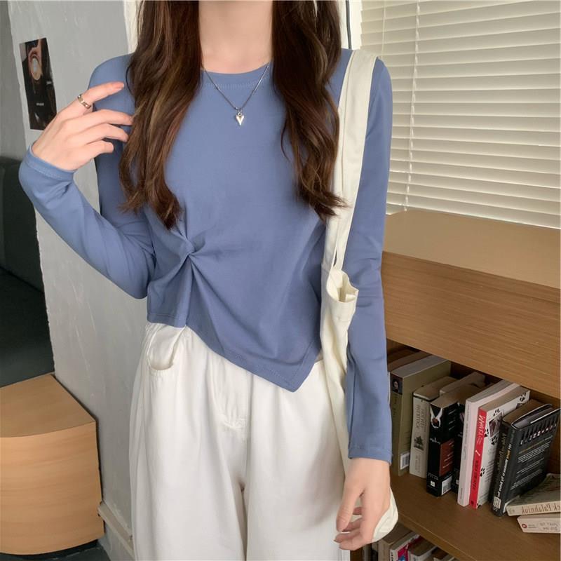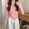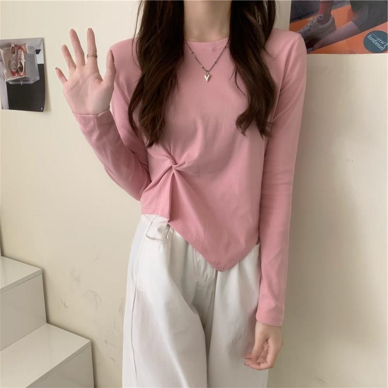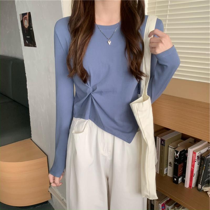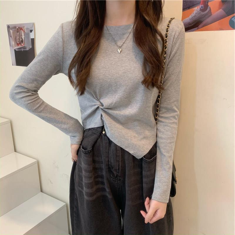 2025 Nuevo Otoño Estilo Coreano Diseño Irregular Manga Larga Camiseta Top Chic de Estudiante para Mujer Camisa Básica para Mujer