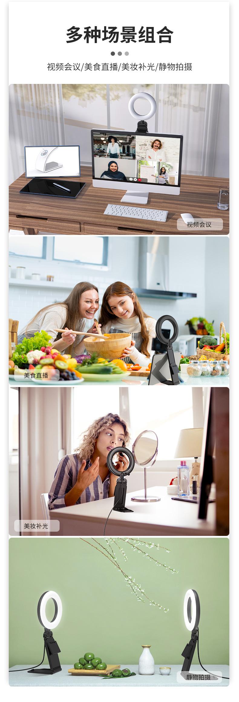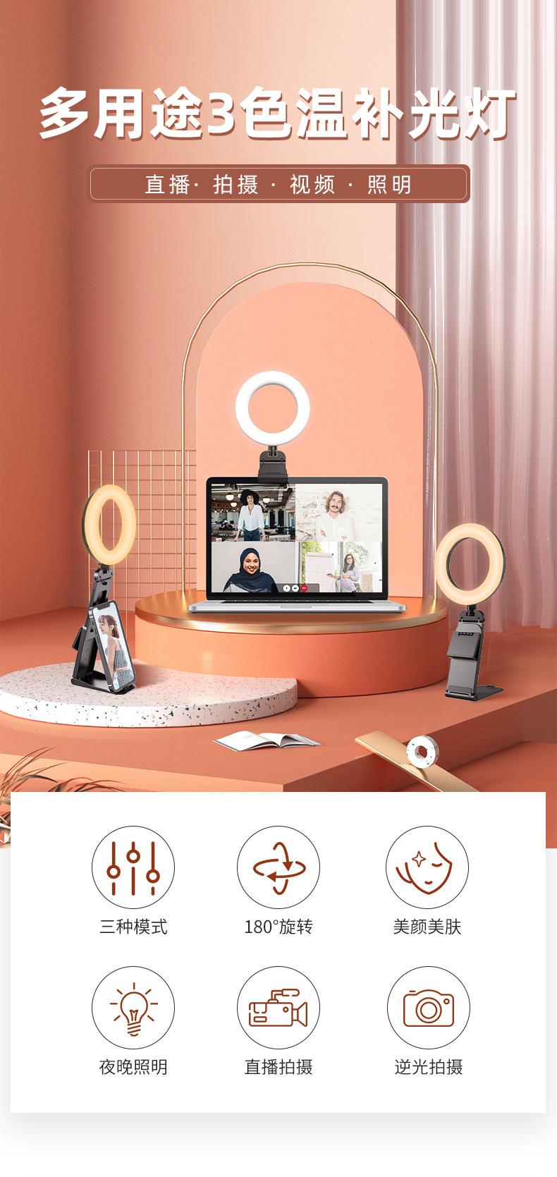 Lámpara de anillo para teléfono móvil, soporte de escritorio, luz de relleno compacta, portátil, para selfies en vivo, luz de relleno de belleza, Amazon