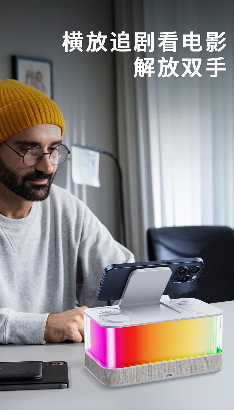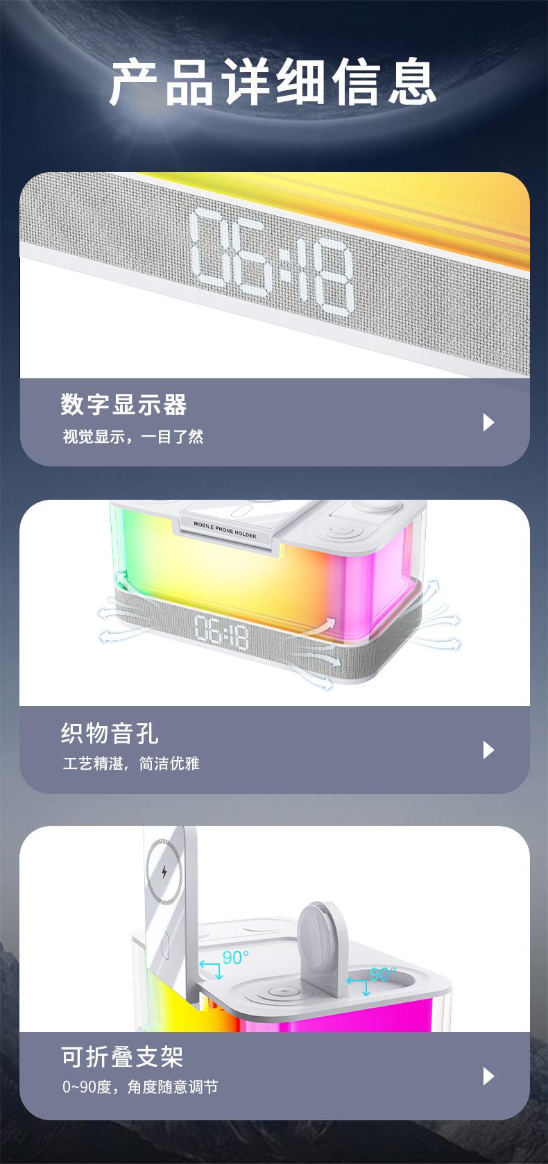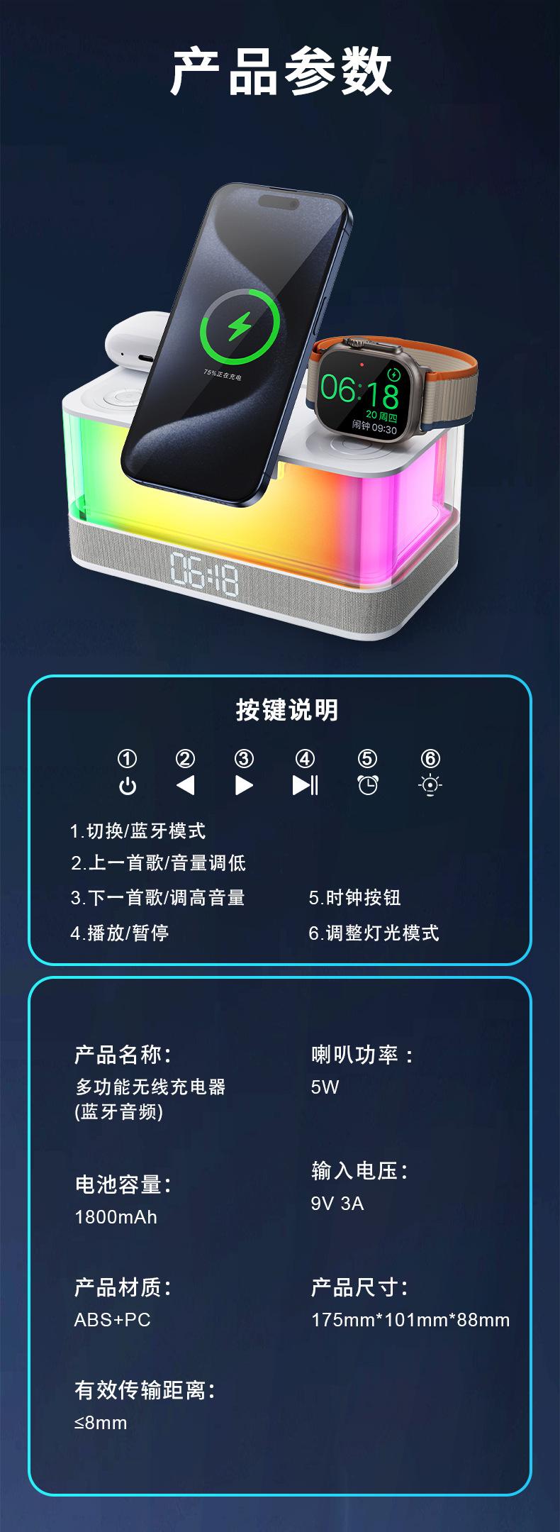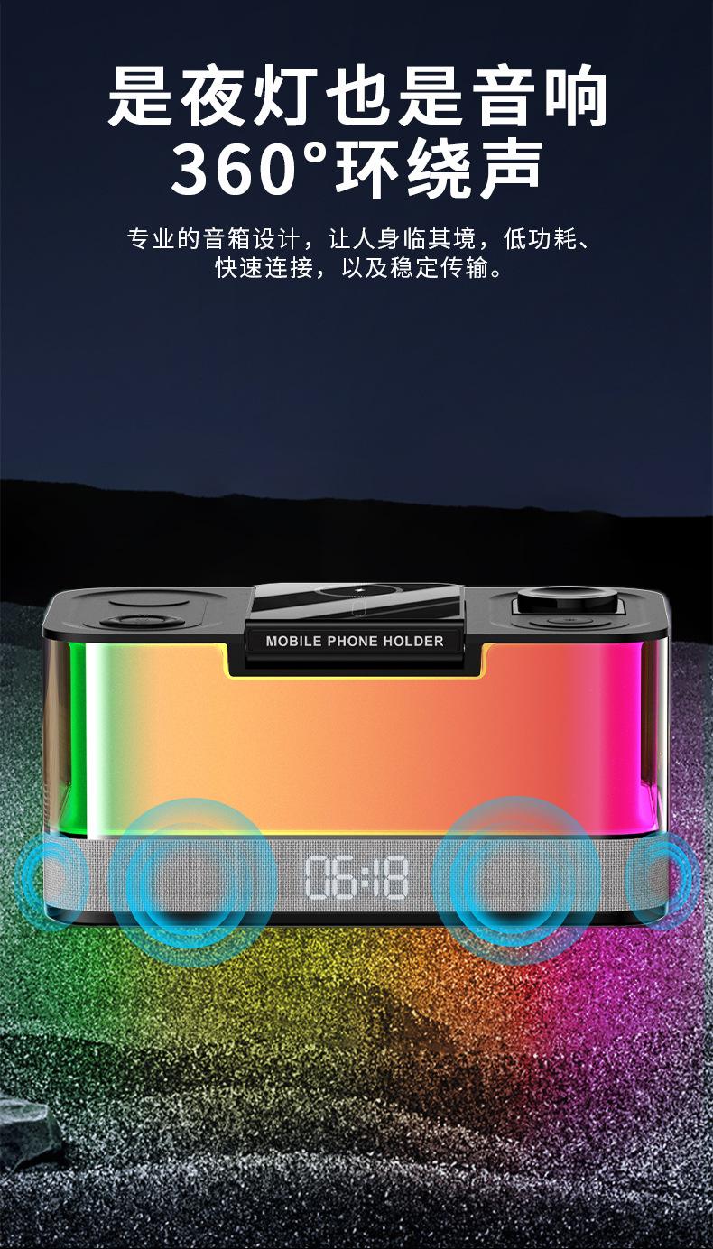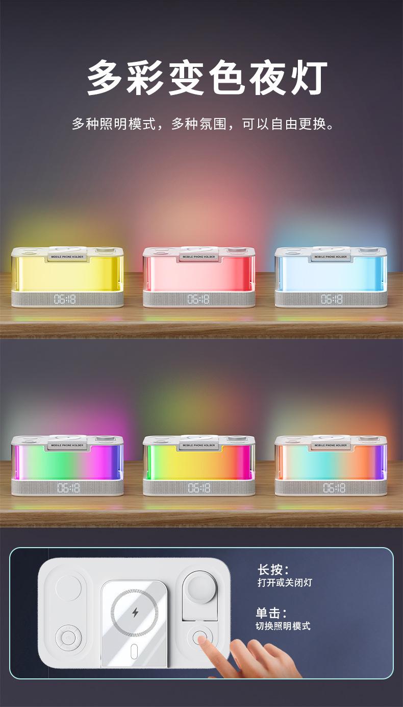 Cargador inalámbrico seis en uno transfronterizo luz nocturna colorida audio carga rápida de teléfono móvil audífonos reloj carga inalámbrica venta al por mayor