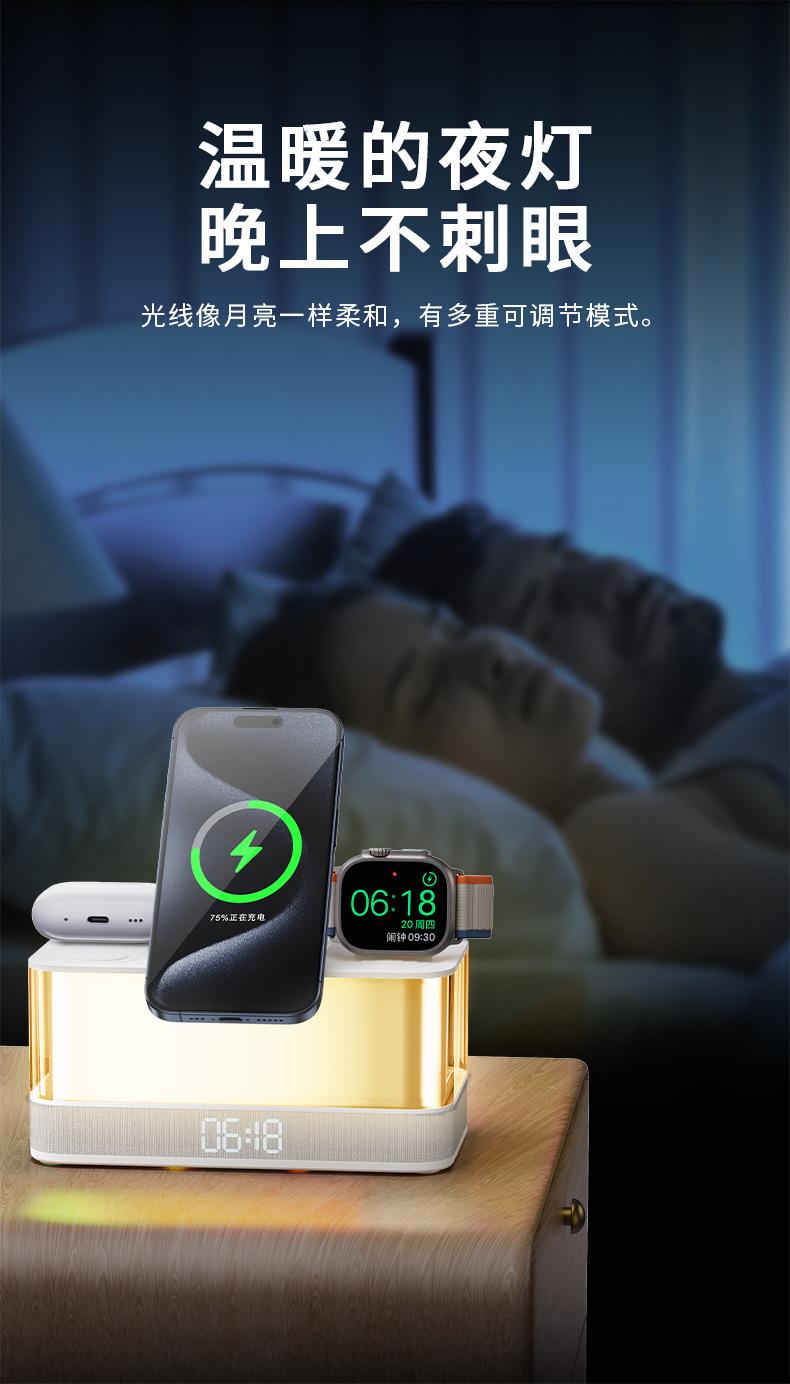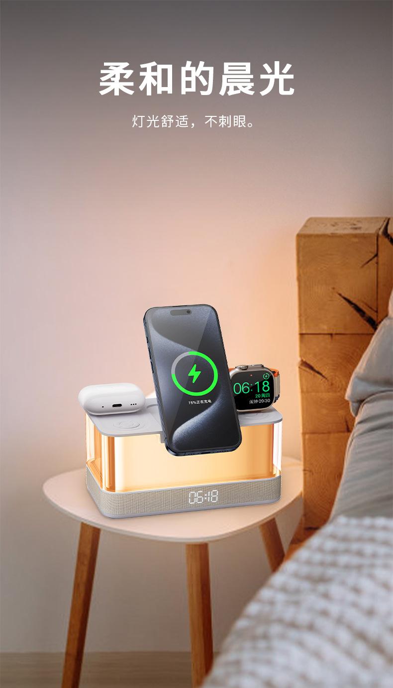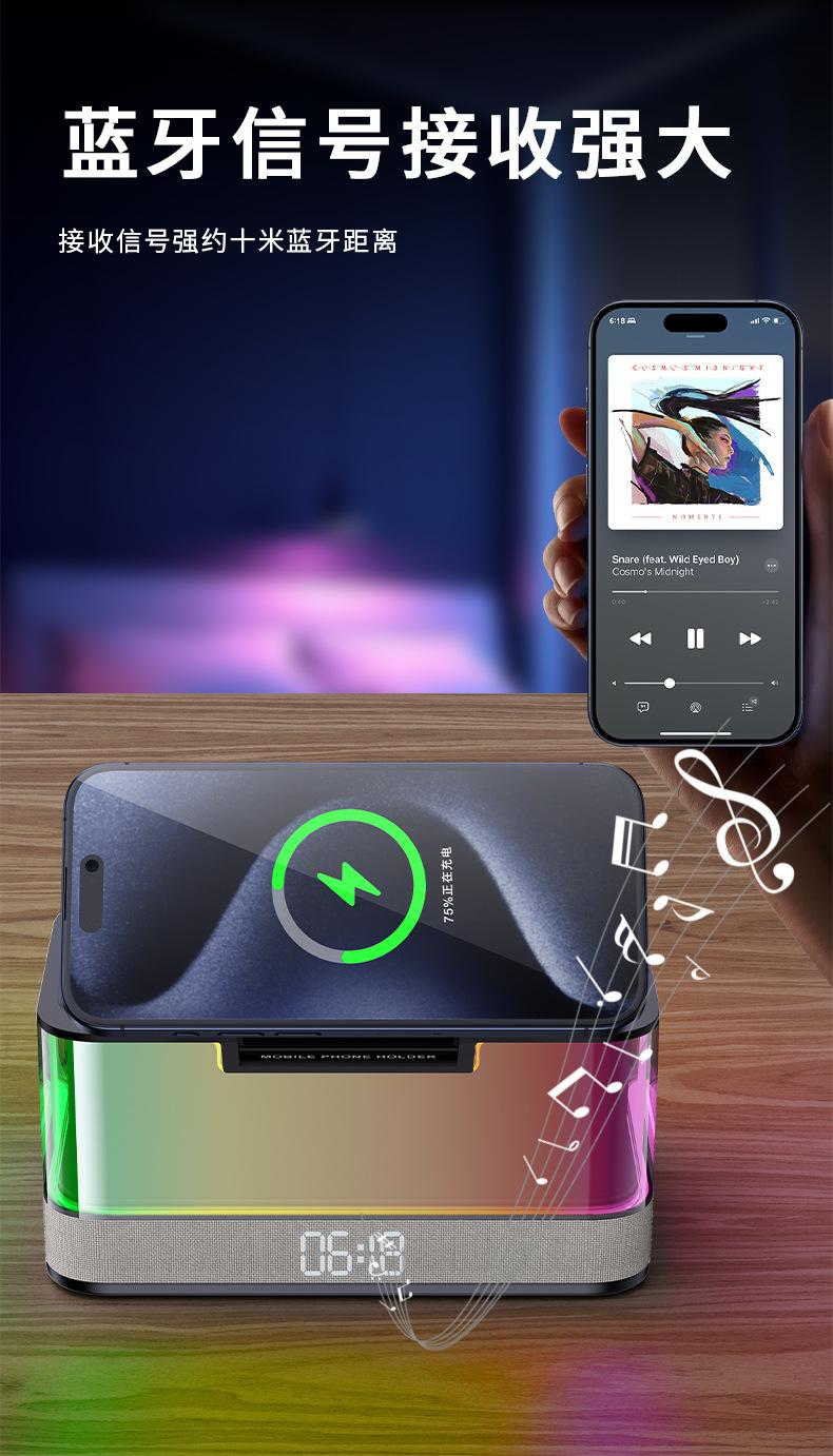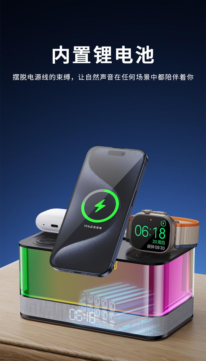 Cargador inalámbrico seis en uno transfronterizo luz nocturna colorida audio carga rápida de teléfono móvil audífonos reloj carga inalámbrica venta al por mayor
