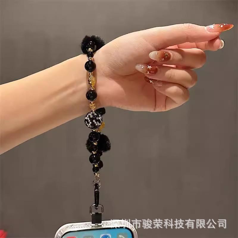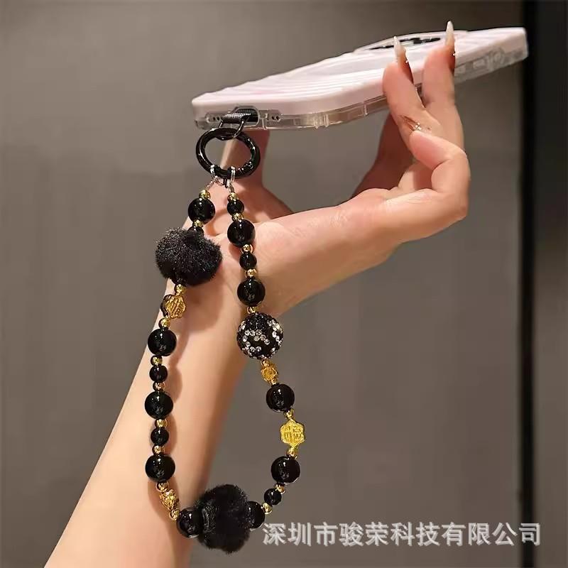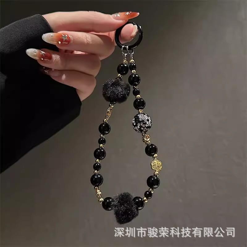Cadena Avanzada para Teléfono Móvil Ins Cadena Colgante de Muñeca con Bola de Pelo Cordón de Cuentas Clip de Lujo Colgante Portátil Llavero
