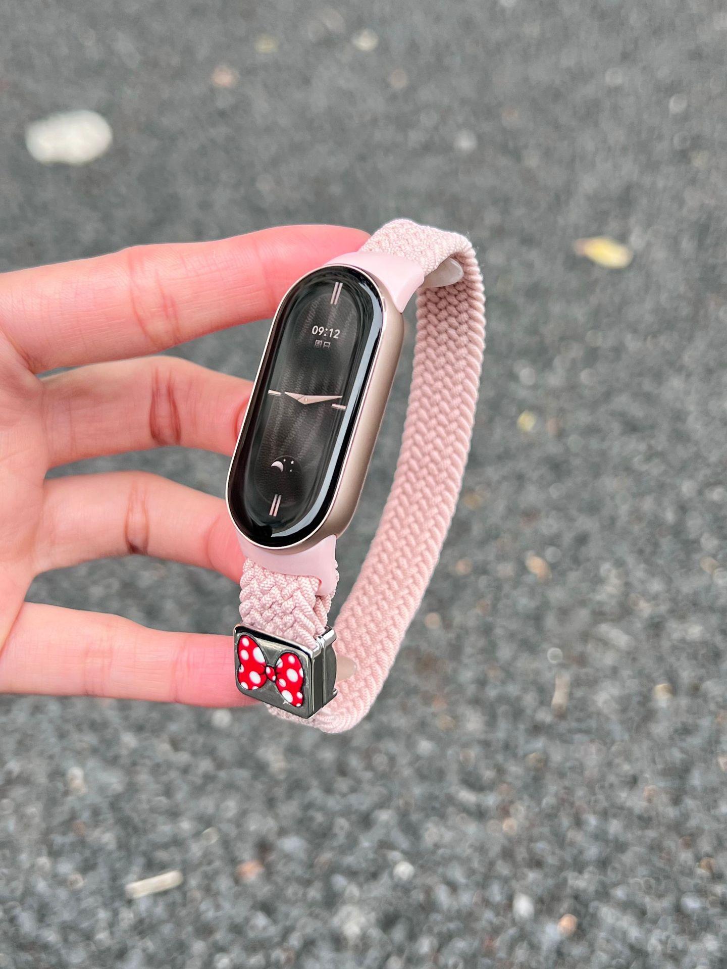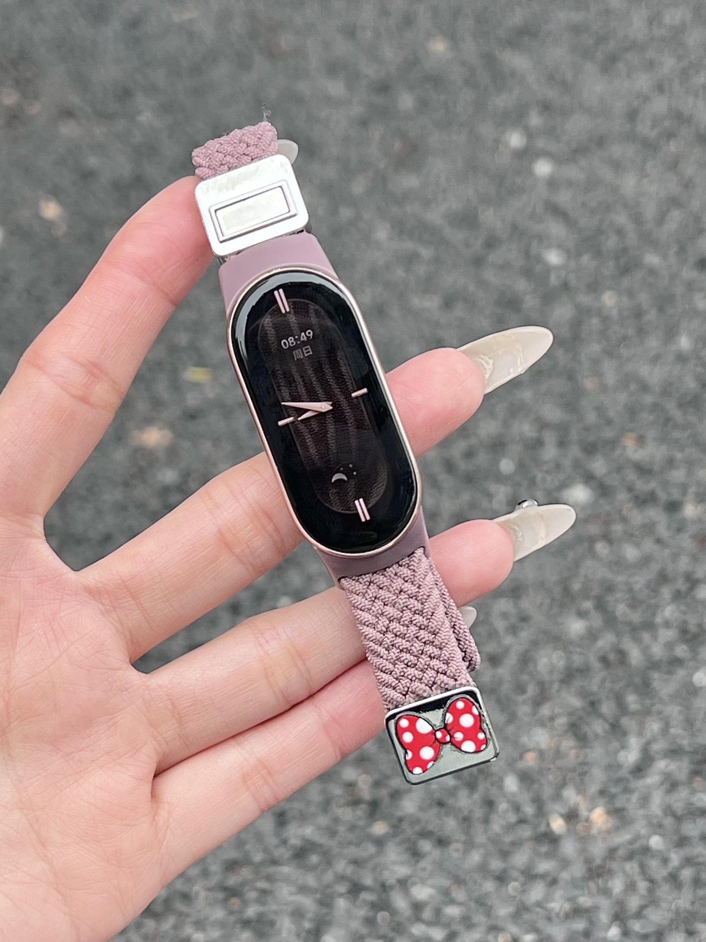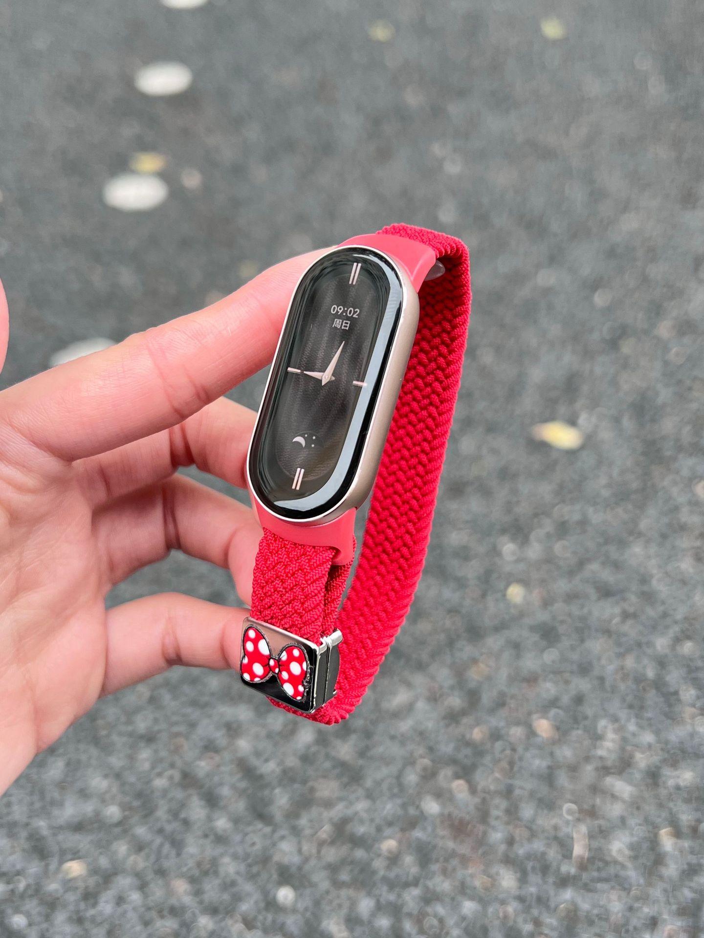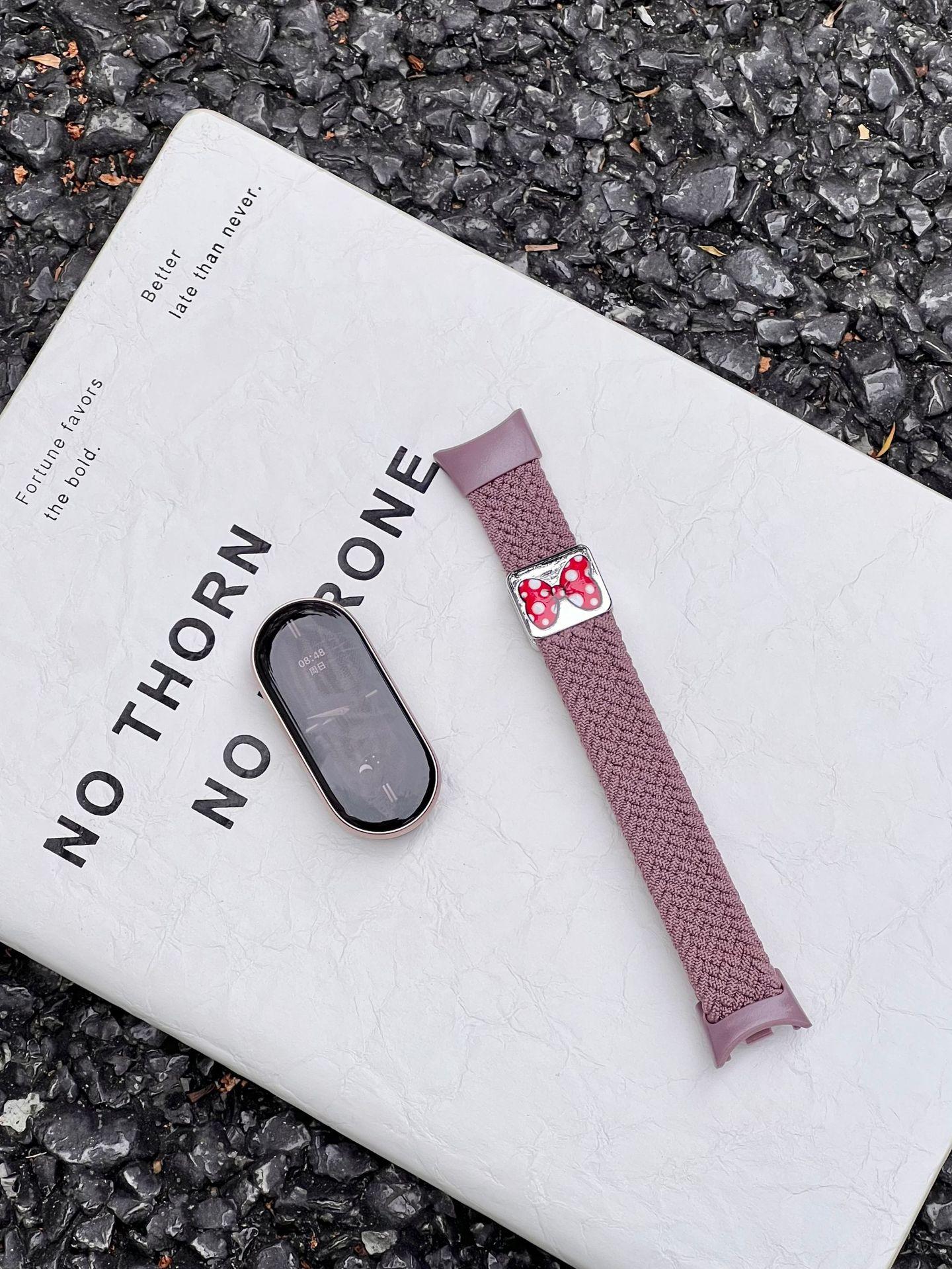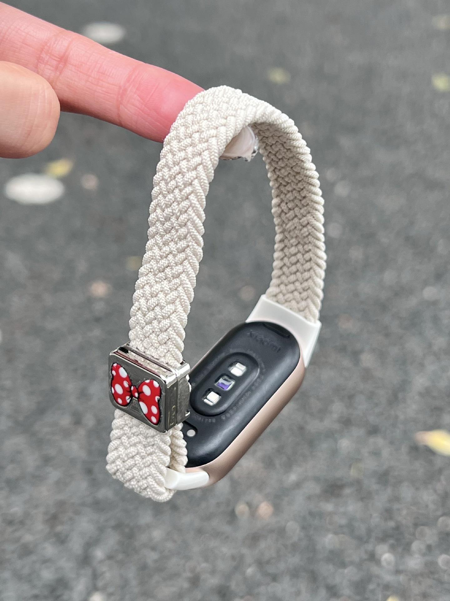 Pulsera Tejida de Nylon con Estampado de Lazo y Hebilla Magnética Adecuada para Xiaomi Mi Band Generación 10/9/8