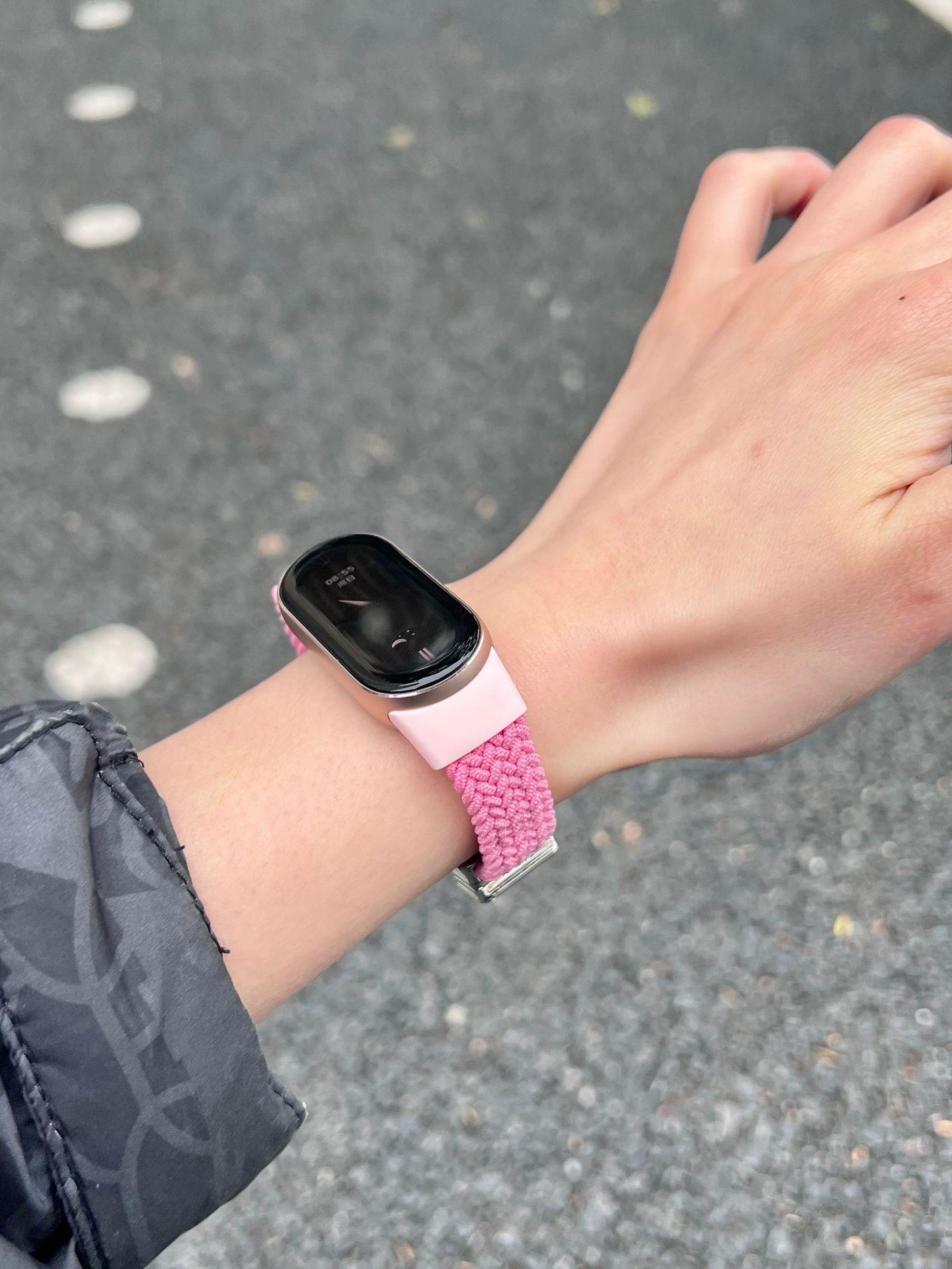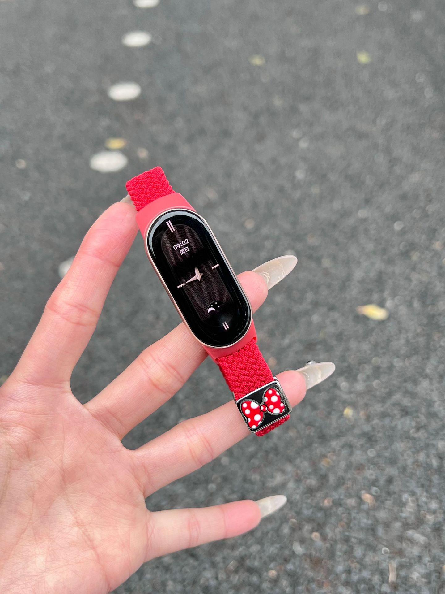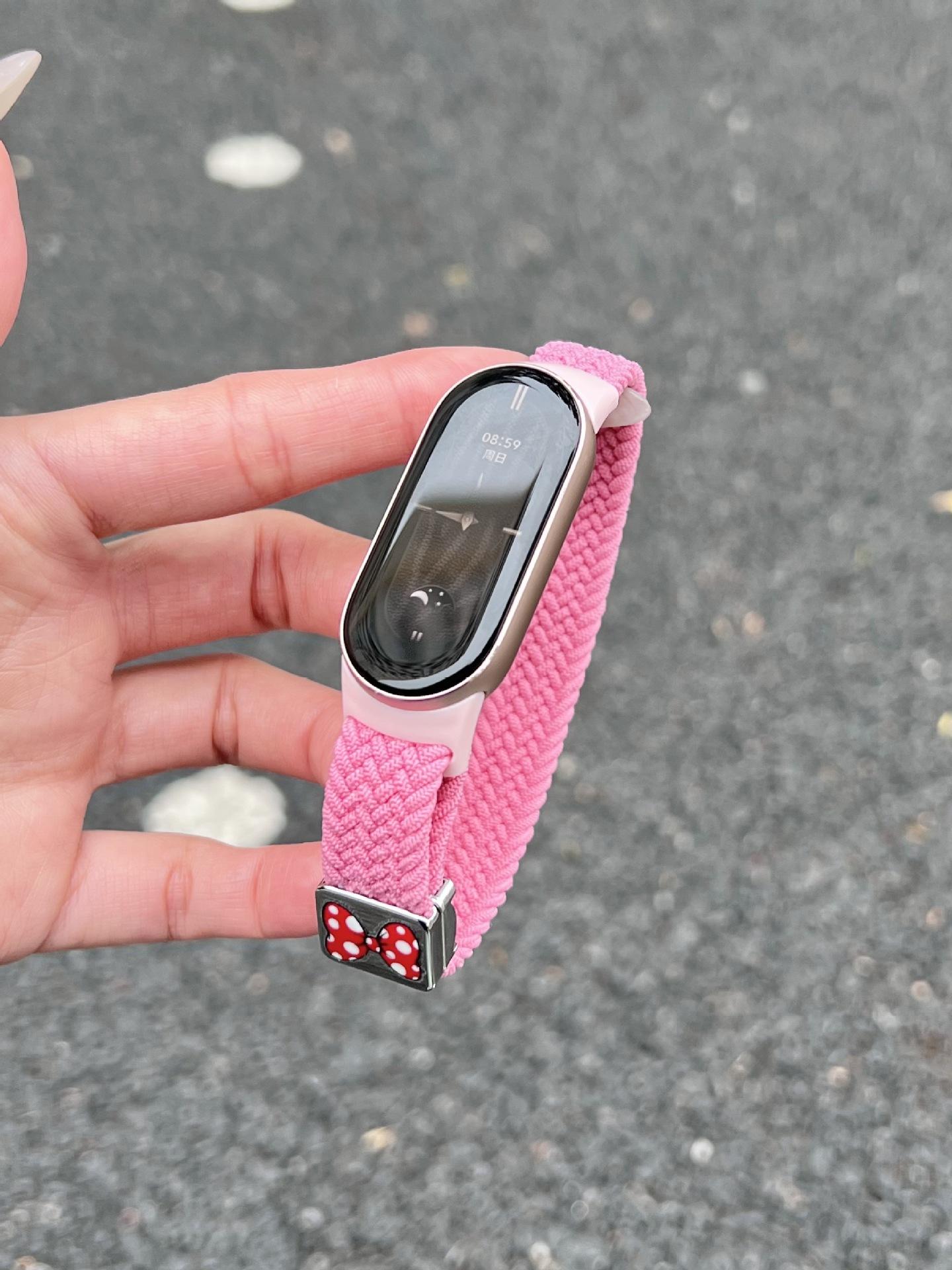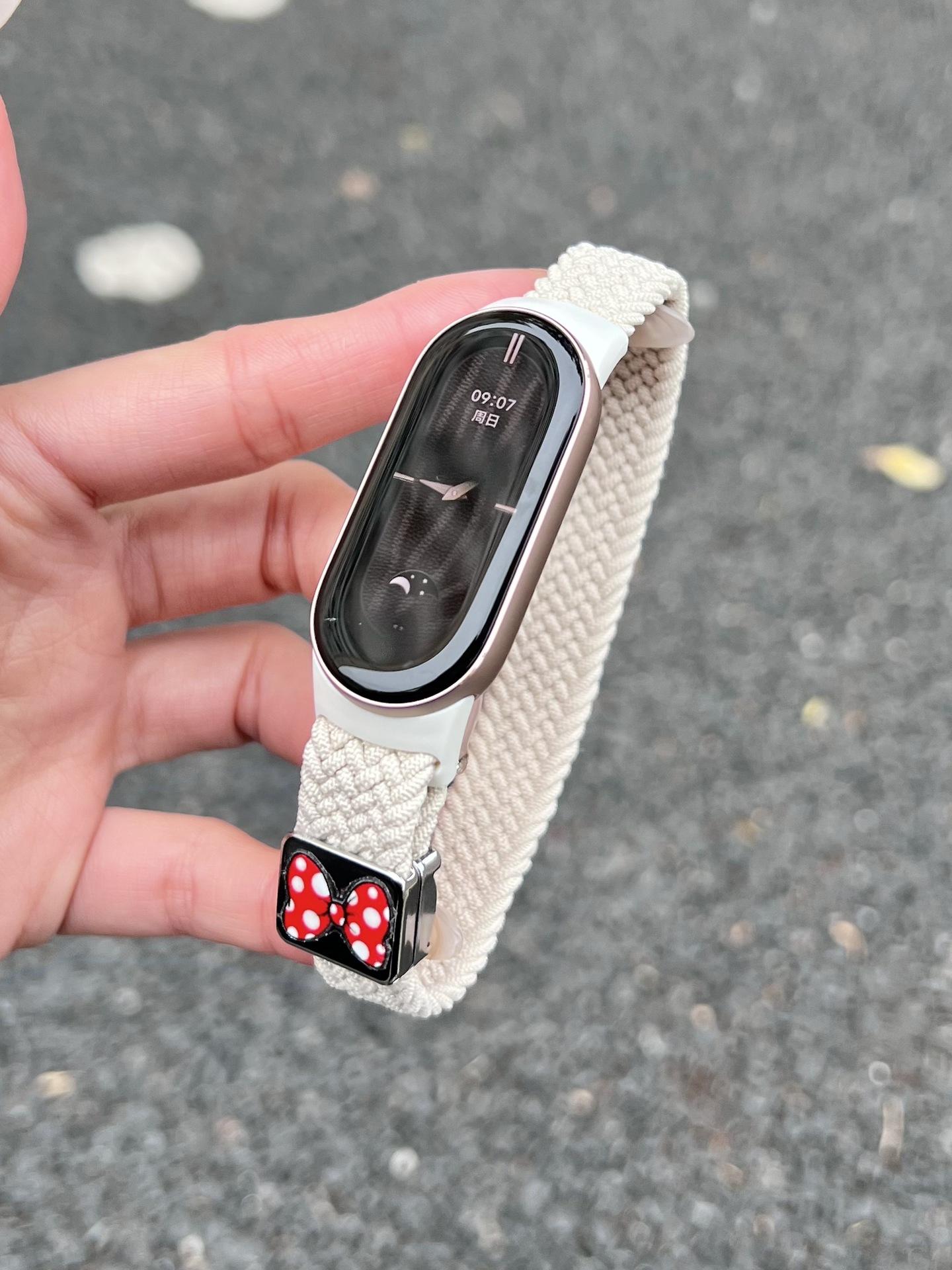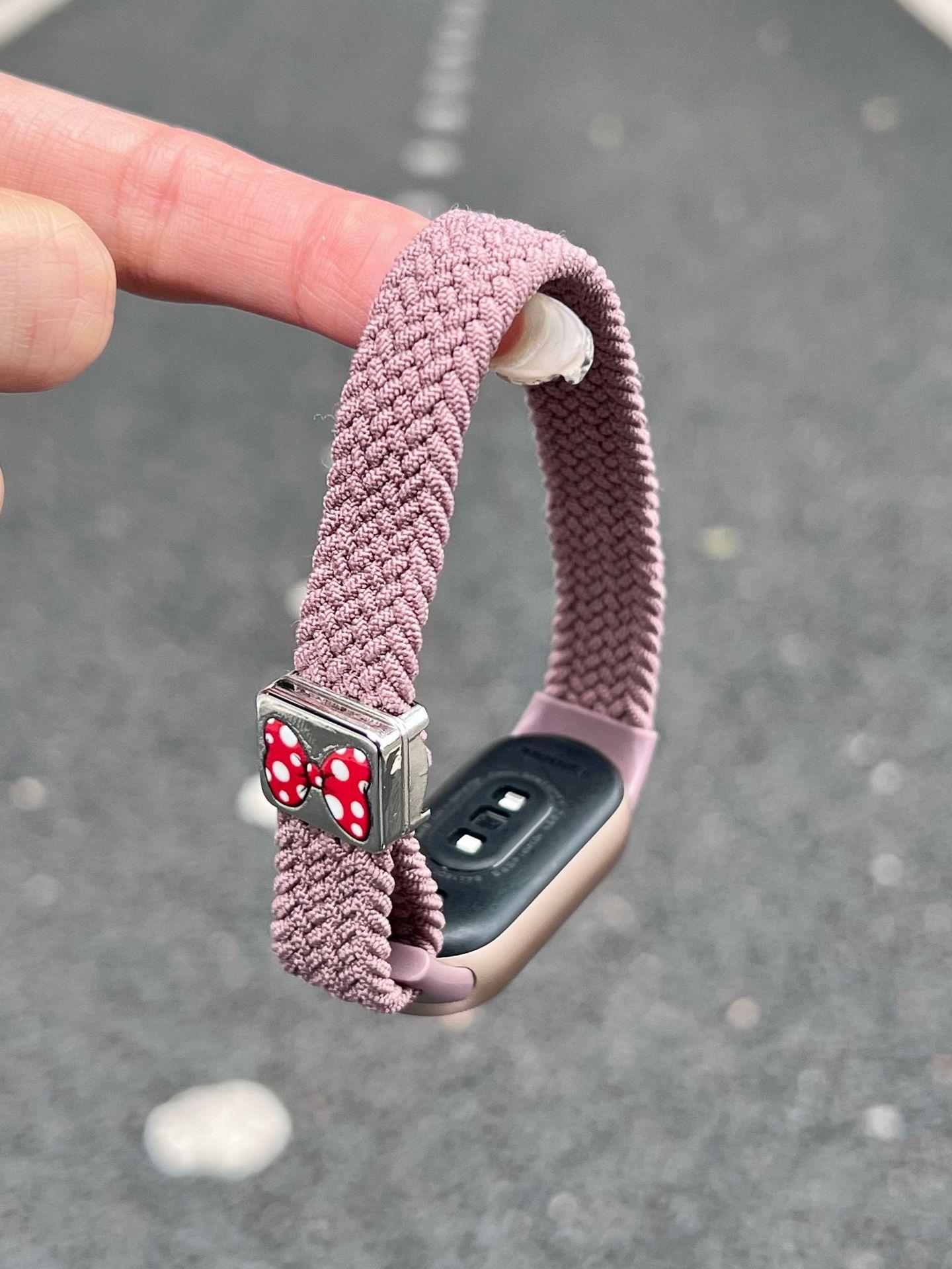 Pulsera Tejida de Nylon con Estampado de Lazo y Hebilla Magnética Adecuada para Xiaomi Mi Band Generación 10/9/8