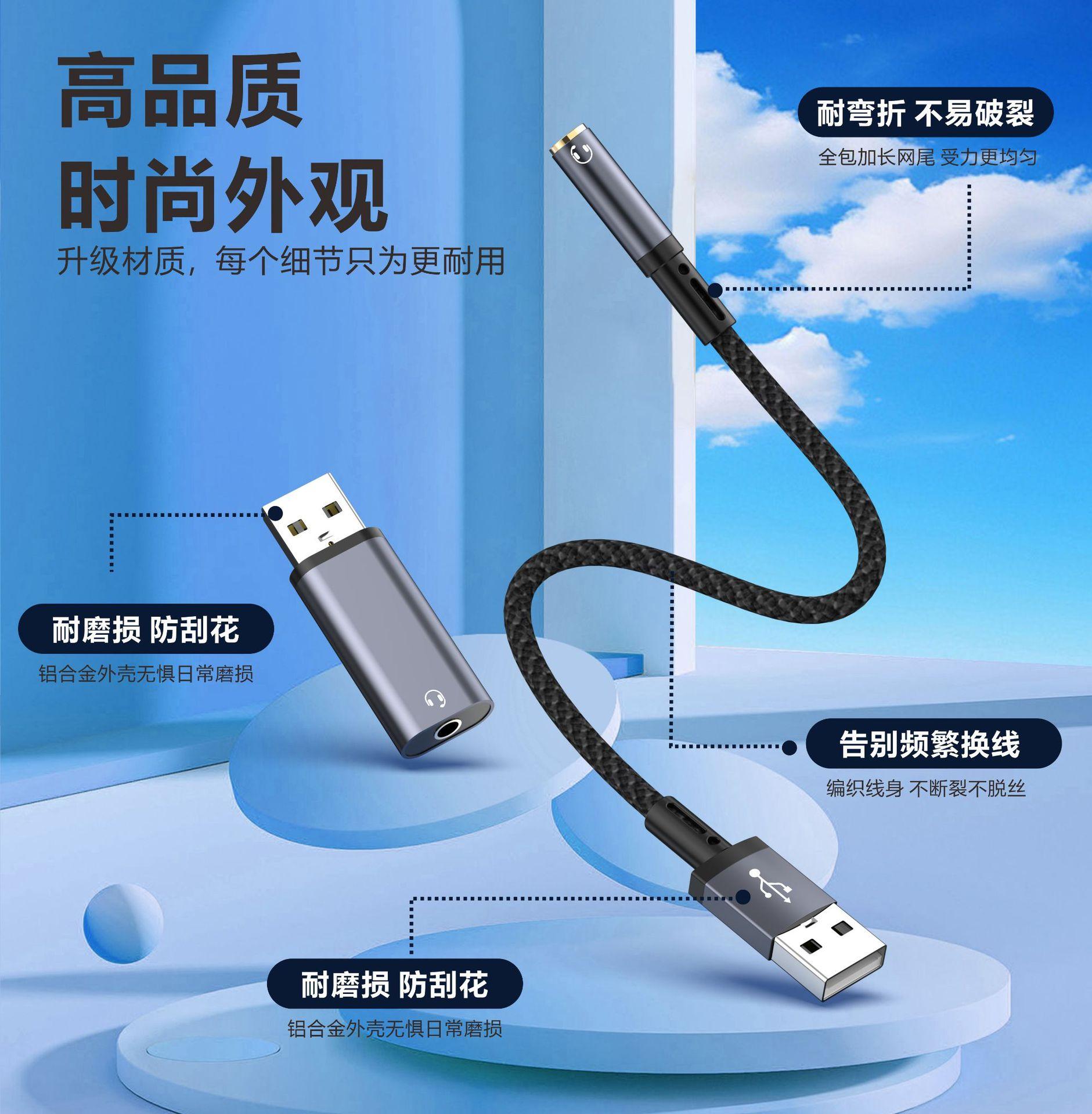 Cable de Audio USB a 3.5mm Soporte para Audífonos Micrófono Audio Audífono 2 en 1 Adaptador para Laptop