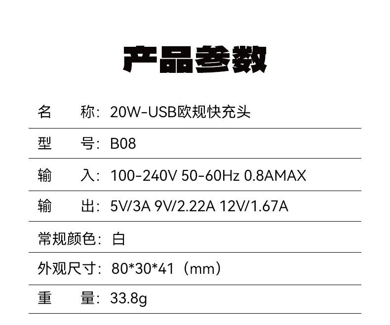 Naked Qc3.0【18w】european usb charging head★Does not include thread