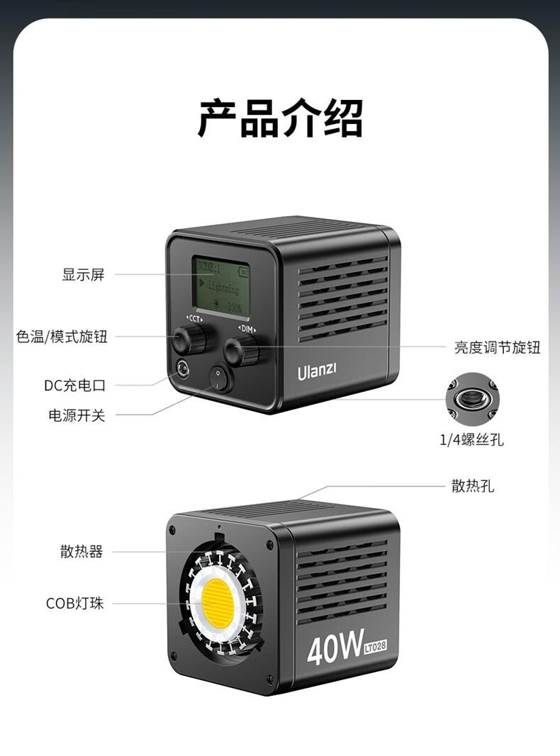 ULANZI (Youbasket) L023 40W Luz suplementaria de temperatura de color doble COB Luz de fotografía para exteriores Batería incorporada Micro