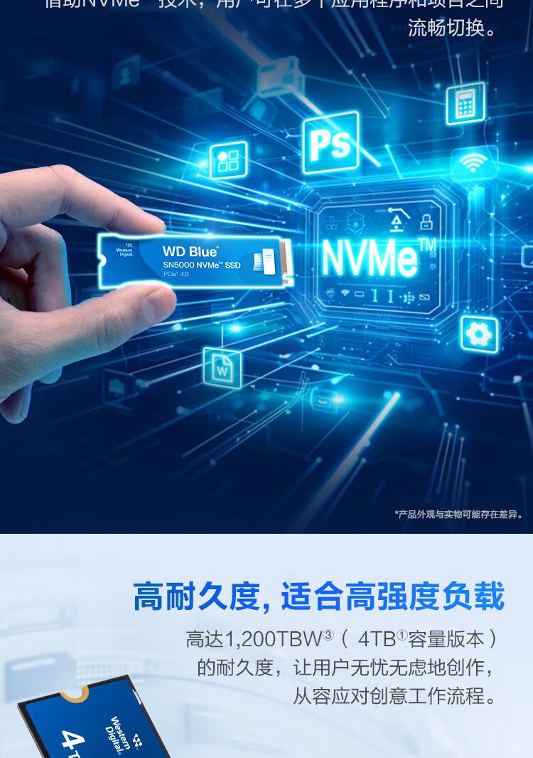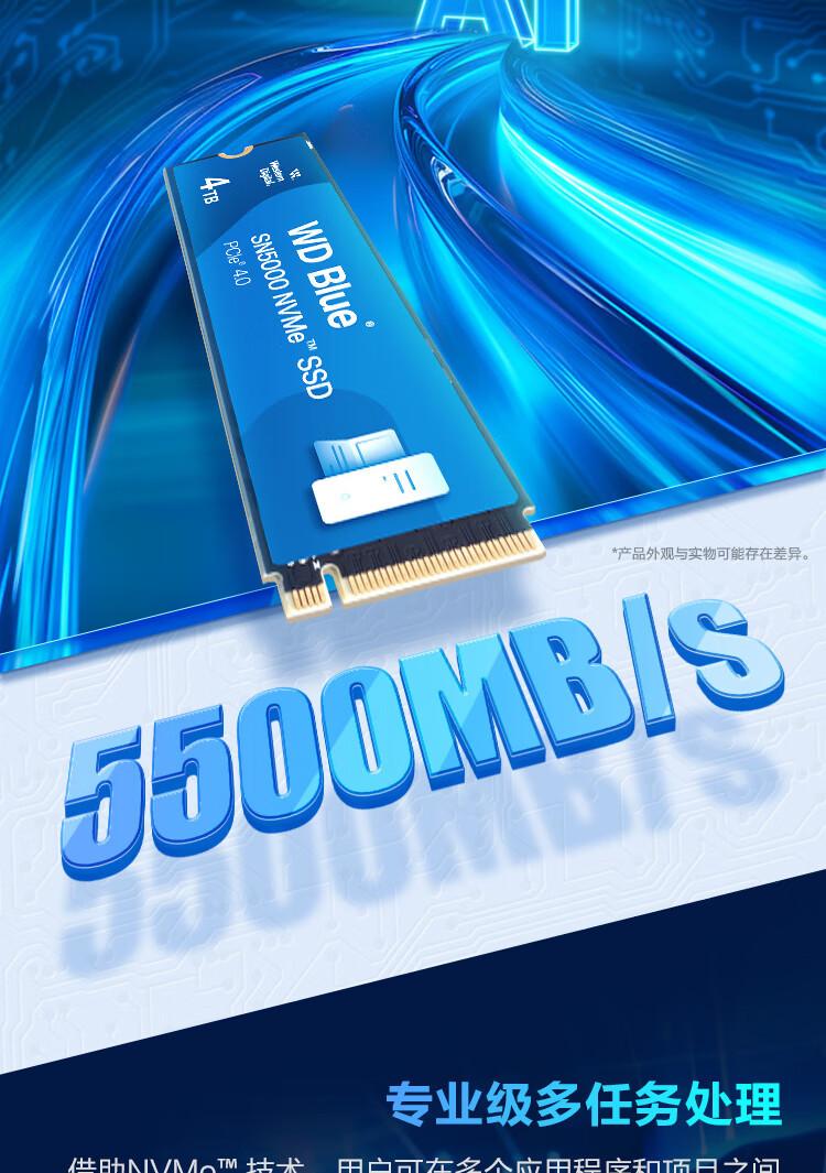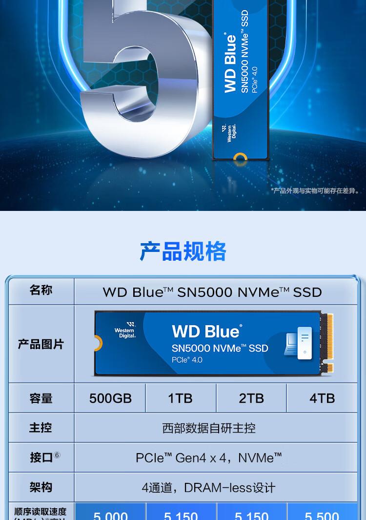 Disco duro SSD con interfaz M.2 para ordenador portátil y de escritorio con IA, accesorios para ordenador SN5000 Blue Disk de 2 TB