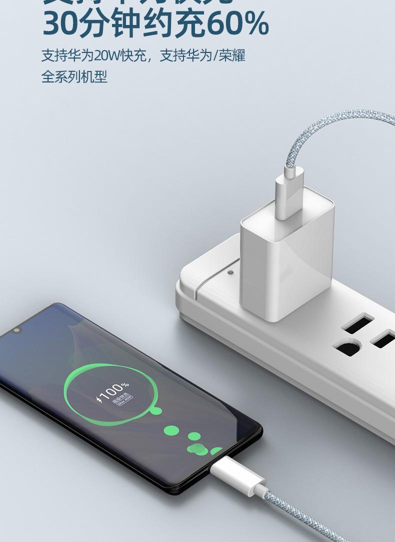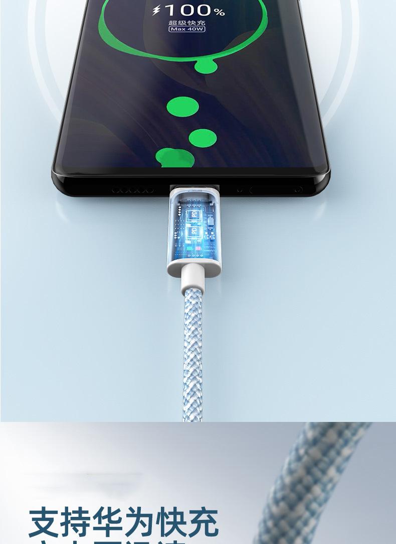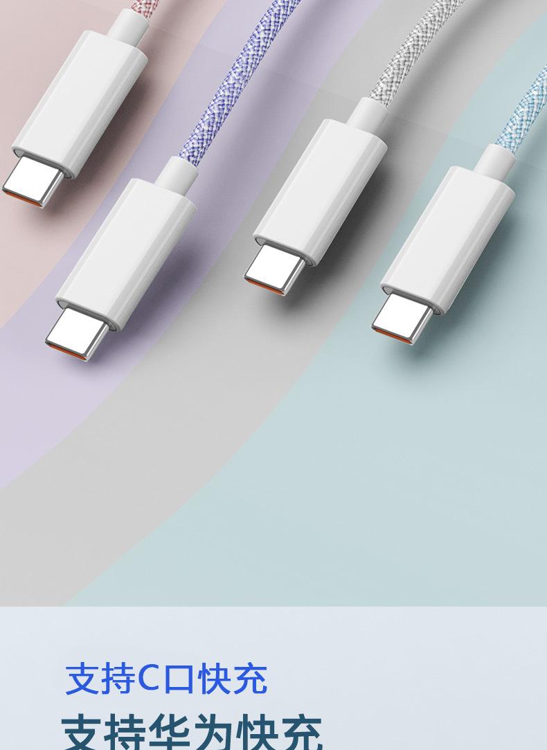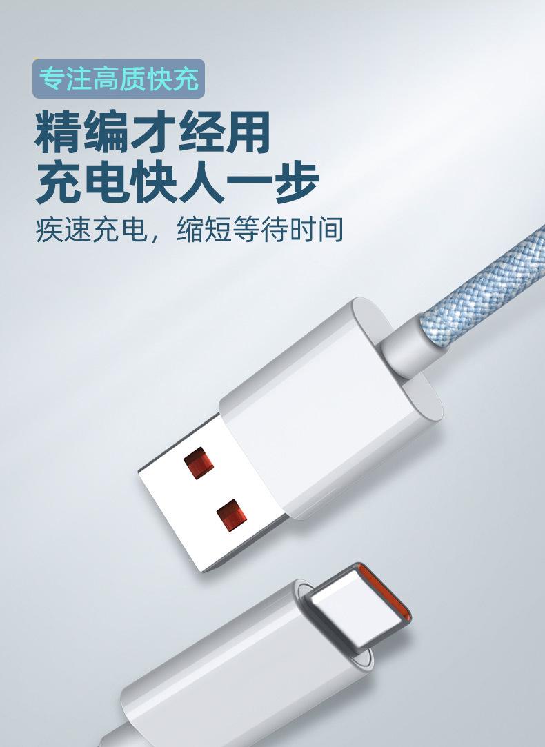 Cable de Datos USB Tipo C Trenzado 6A de Carga Rápida Adecuado para Huawei Xiaomi Teléfono Móvil Android Tableta Carga Rápida Cable para Teléfono Móvil