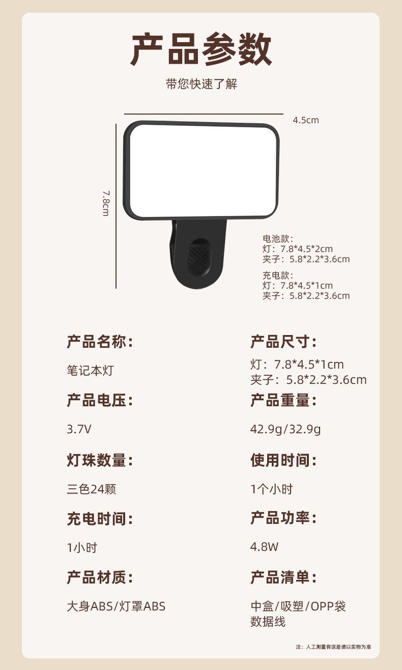 Luz de relleno con clip para teléfono móvil, transmisión en vivo, laptop, video, grabación en exteriores, luz suave, mini, portátil, de bolsillo