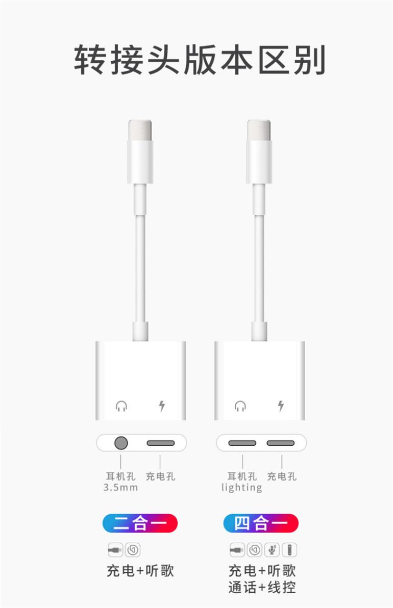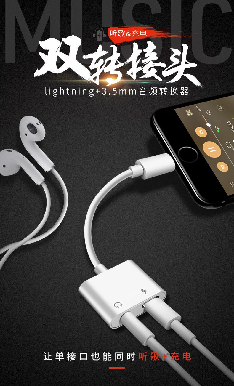 Dual lightning - regular version (charging + listening to music + watching videos + wired control + calls)
