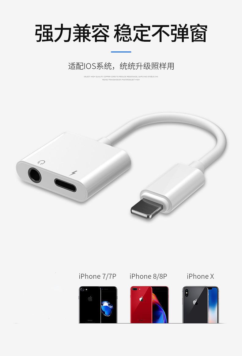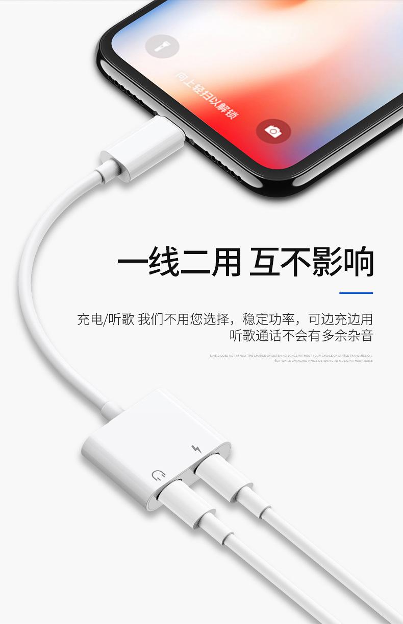 Adecuado para Adaptador Apple 8 Cable Adaptador Dual Lightning Más Carga de 3.5 mm y Escuchar Música Cable de Datos Dos en Uno