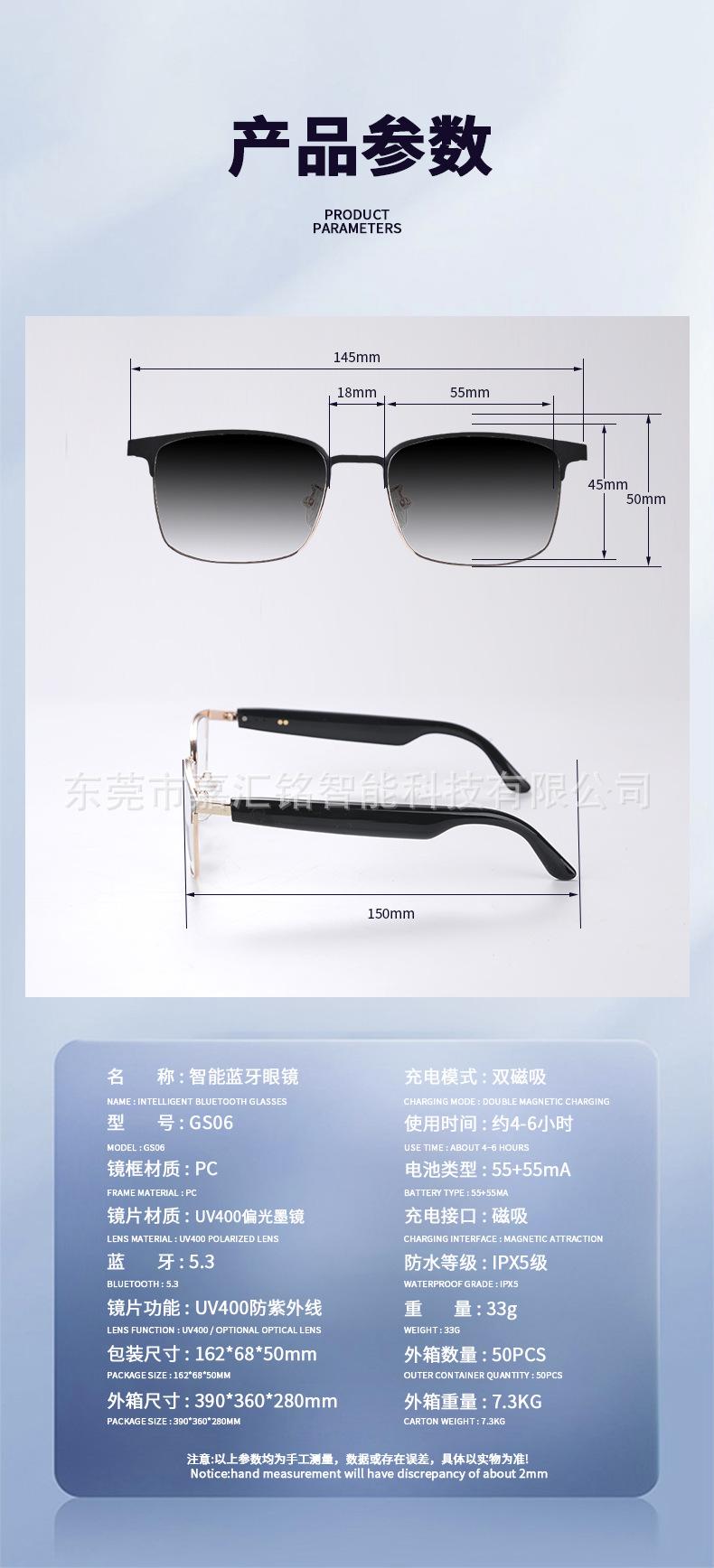Gafas inteligentes GS06 Huaqiang North, nuevas gafas AR con marco de metal que cambian de color, antiultravioleta, Bluetooth y carga magnética.