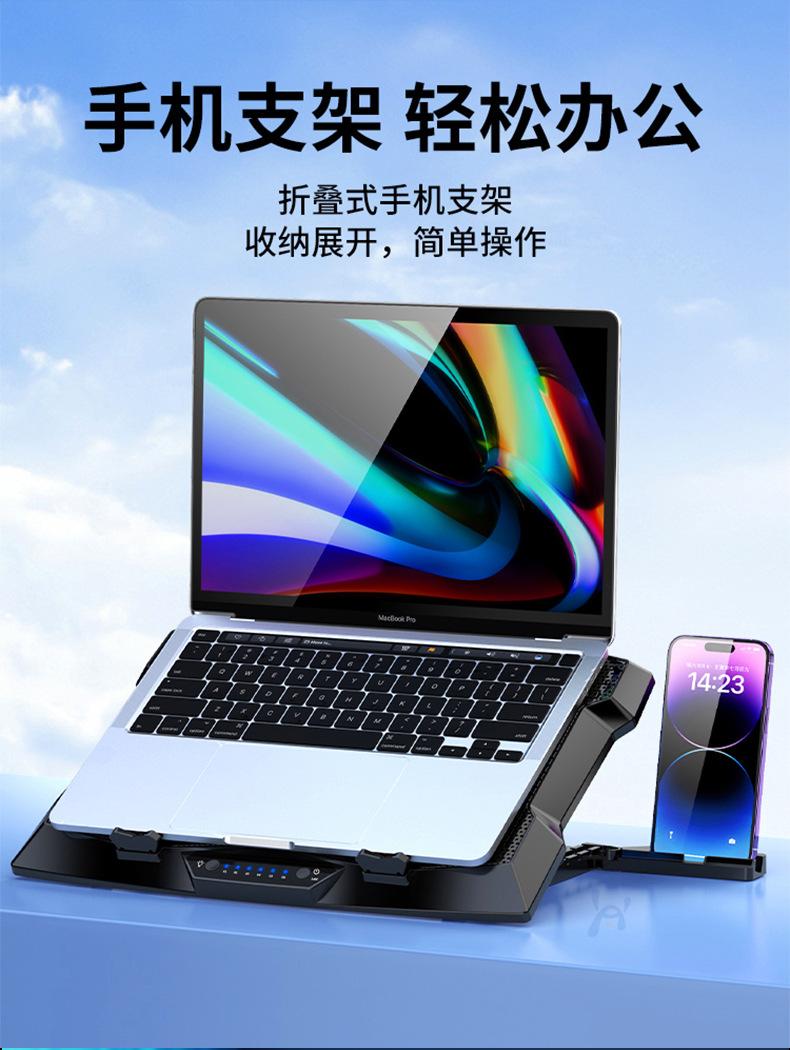 Base de refrigeración para portátil de 15,6 pulgadas, soporte de refrigeración silencioso, escape plegable