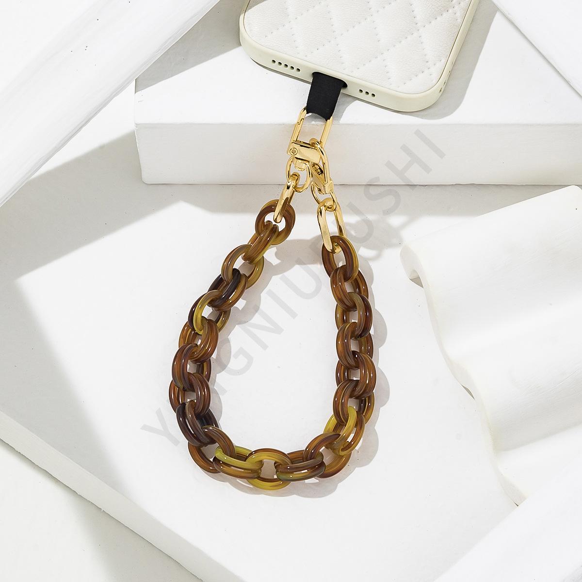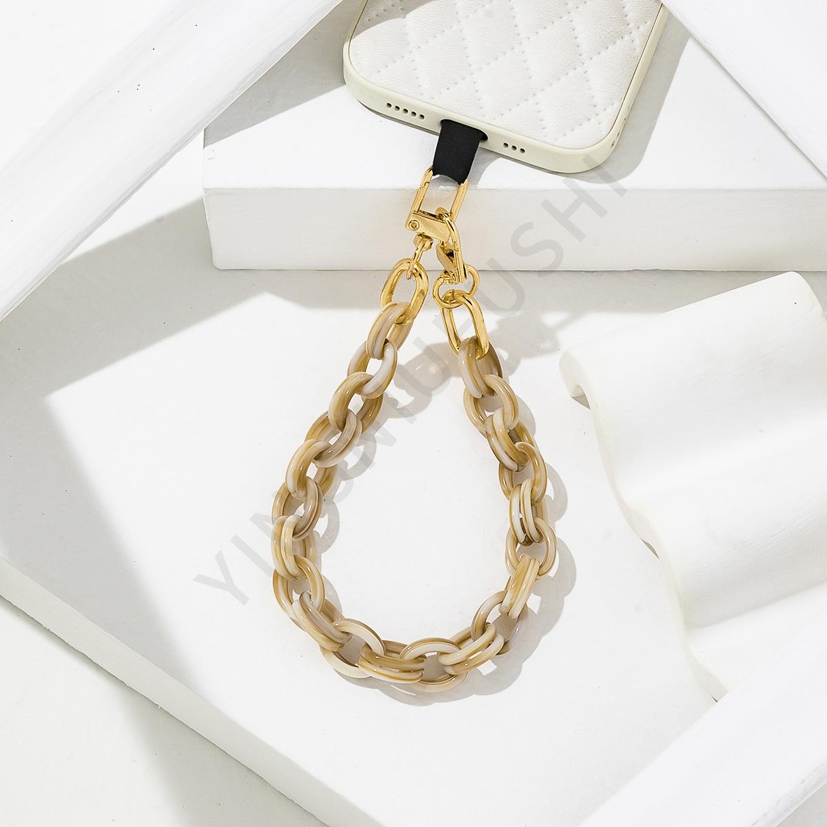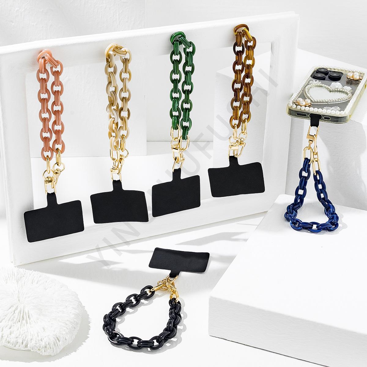 Nuevo cordón para teléfono móvil con cadena acrílica, color sólido, combina con todo, ligero, de lujo, decorativo, de metal, colgante para teléfono móvil.