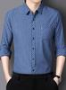 Camisa de manga larga para hombre, nueva primavera 2025, con bolsillo real, informal, de negocios, para mediana edad, sin planchado, a rayas.