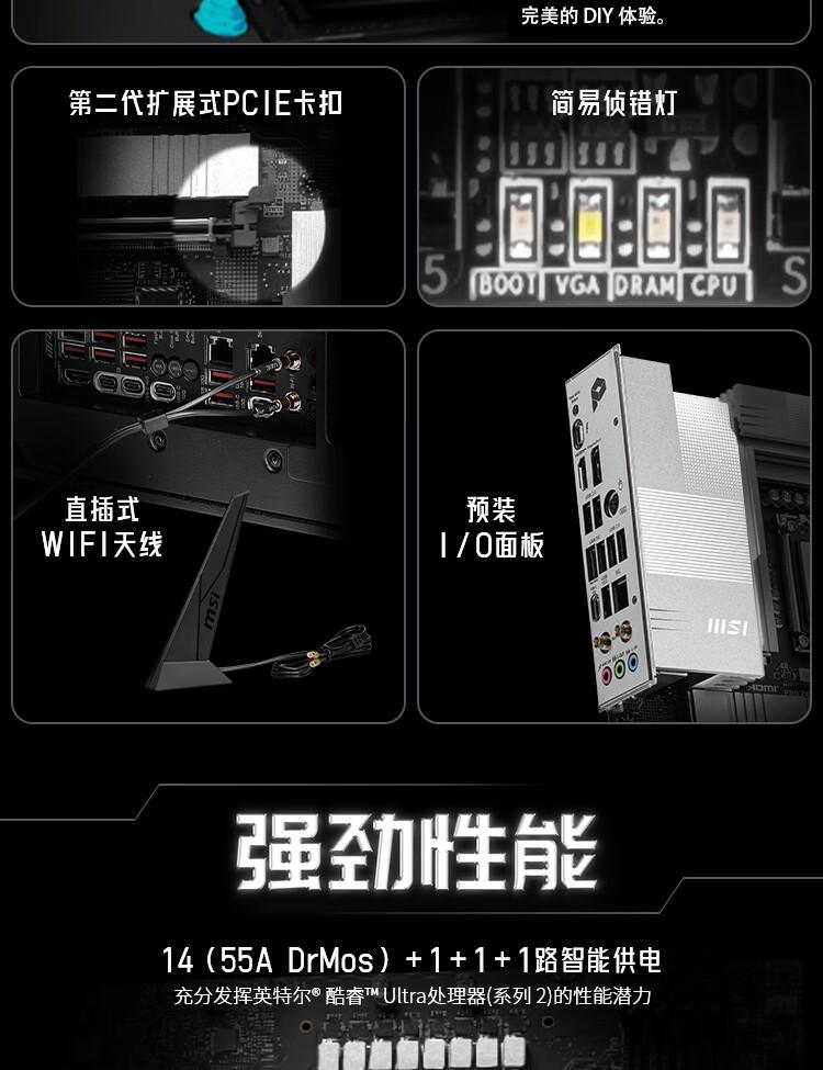 - Admite overclocking del multiplicador de la CPU, overclocking de la memoria (DDR5 hasta 7000+MT/s, requiere memoria de alta frecuencia) y optimización colaborativa para el overclocking de la tarjeta gráfica PCIe 5.0.