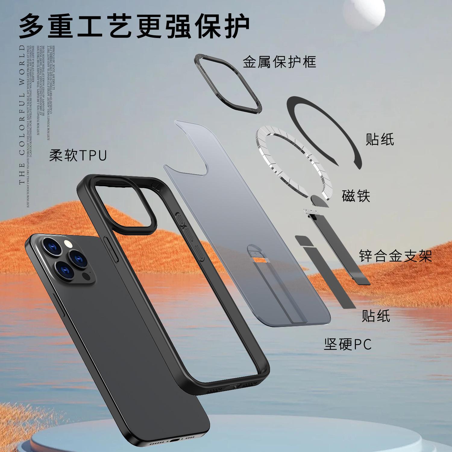 Funda para Teléfono Móvil Apple 16Pro Aplicable Transfronteriza Soporte Magnético Vertical Invisible Triple Prueba Funda de Cobertura Total para Iphone16E